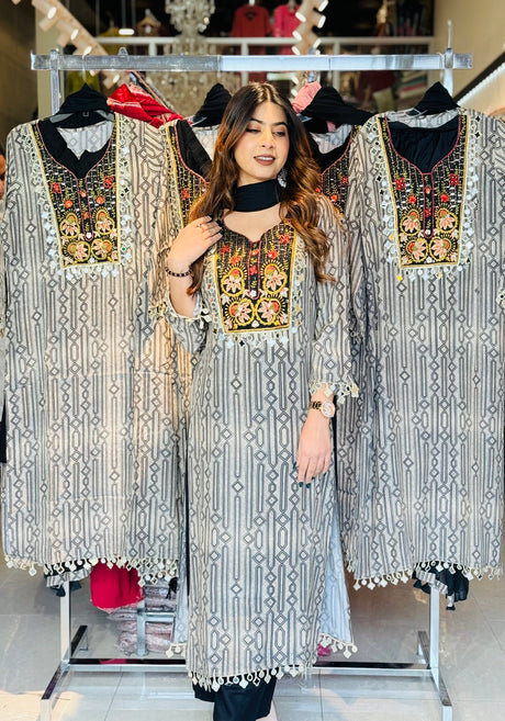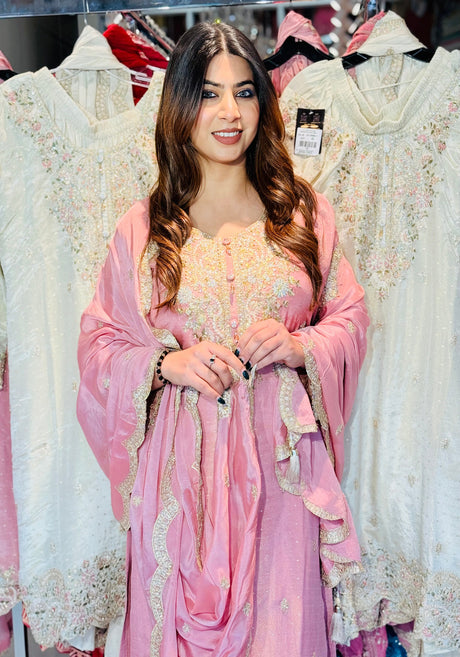 Gulzar Suit – Hand-Embroidered Cream Silk Ensemble