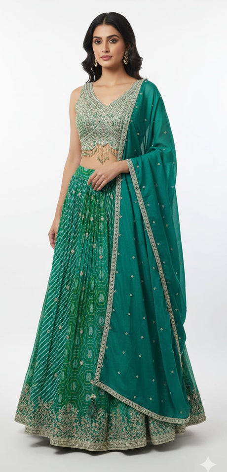 Royal Punjabi Sharara Choli-Sez Green