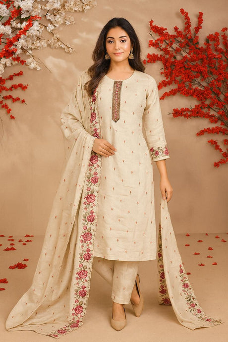 - Simran Exclusive - Gulzar Suit – Hand-Embroidered Cream Silk Ensemble $130.00 CADUnit price /UnavailableLow stock (14 units)