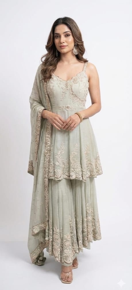 Royal Punjabi Sharara Choli-Sez Green