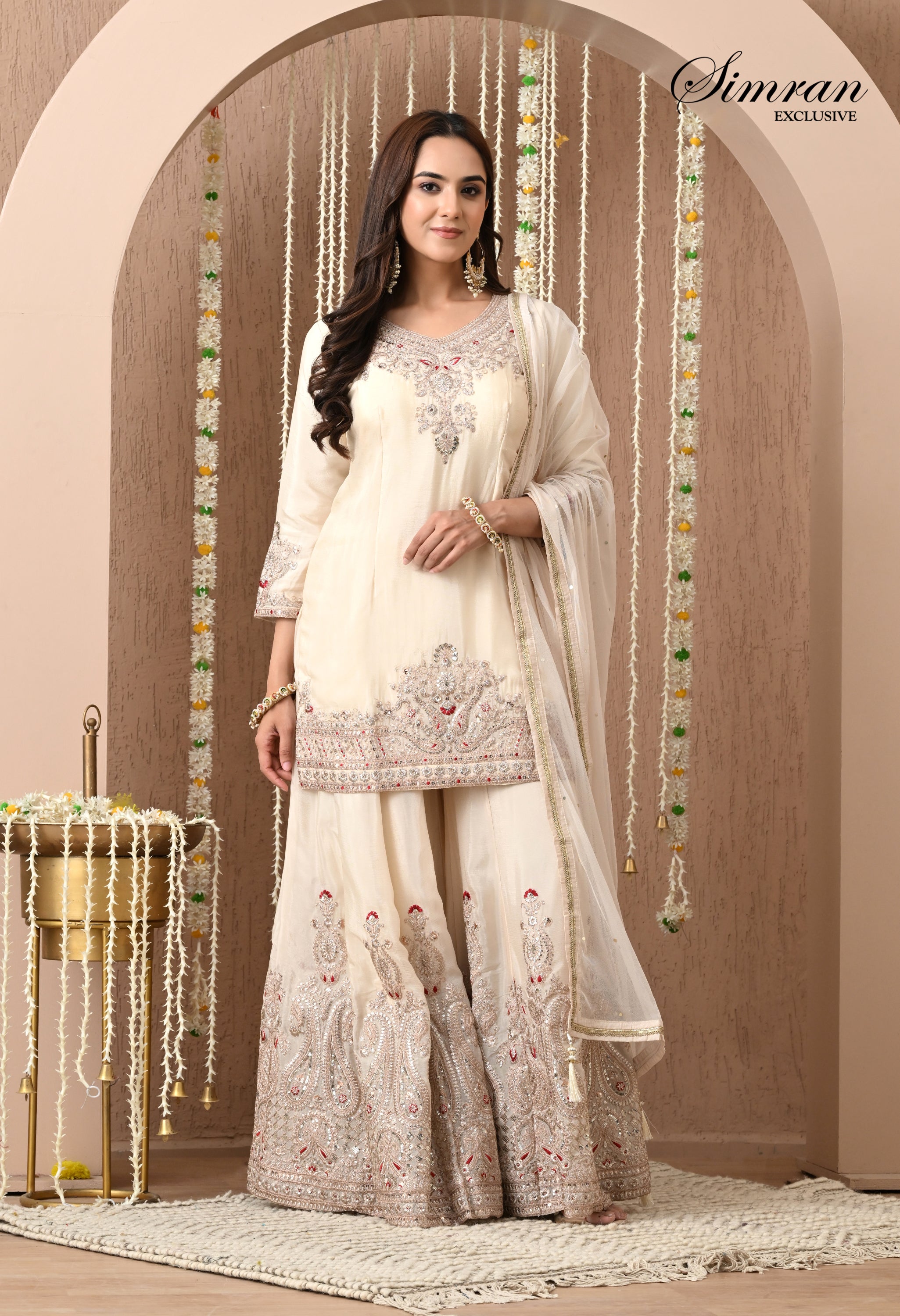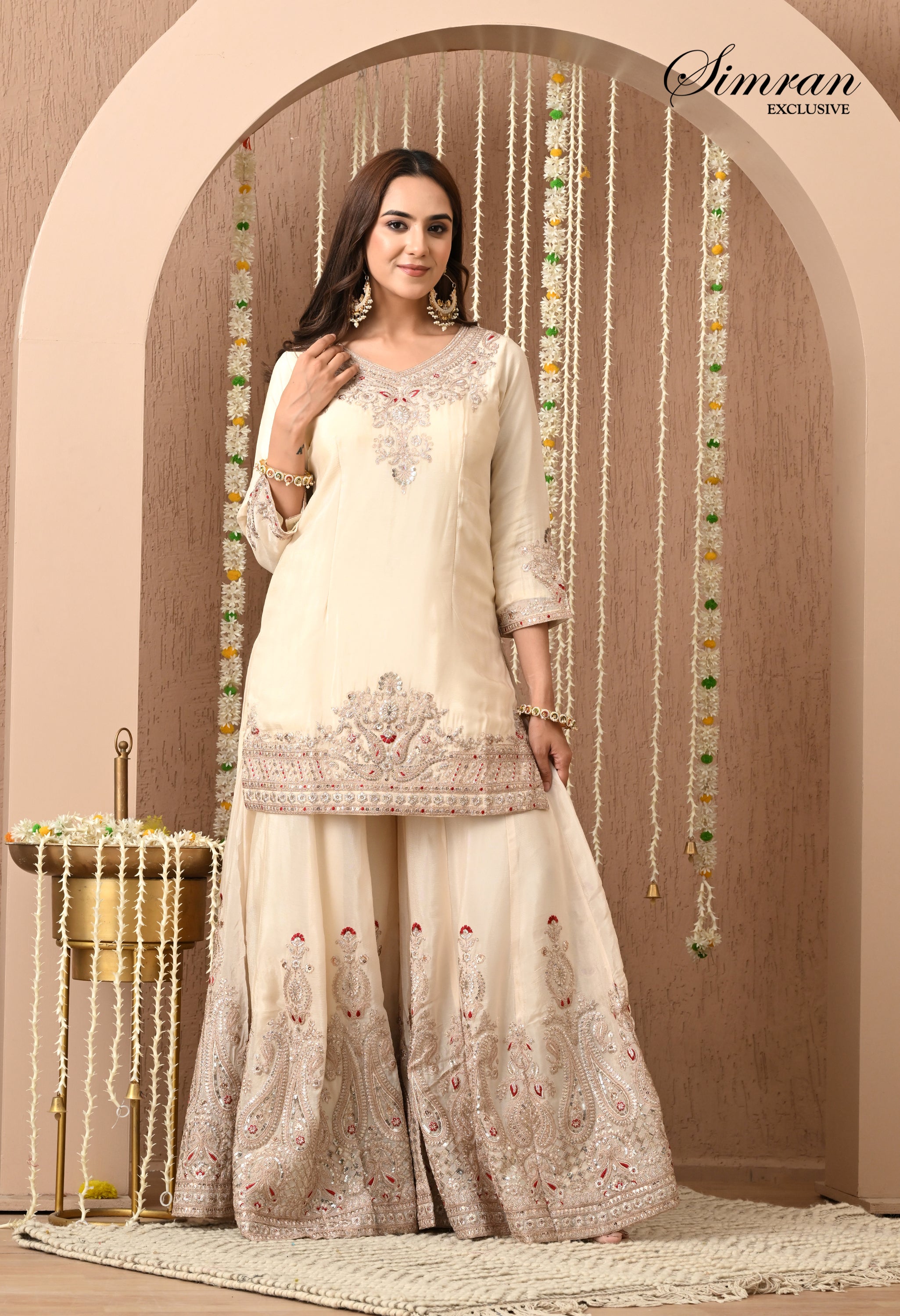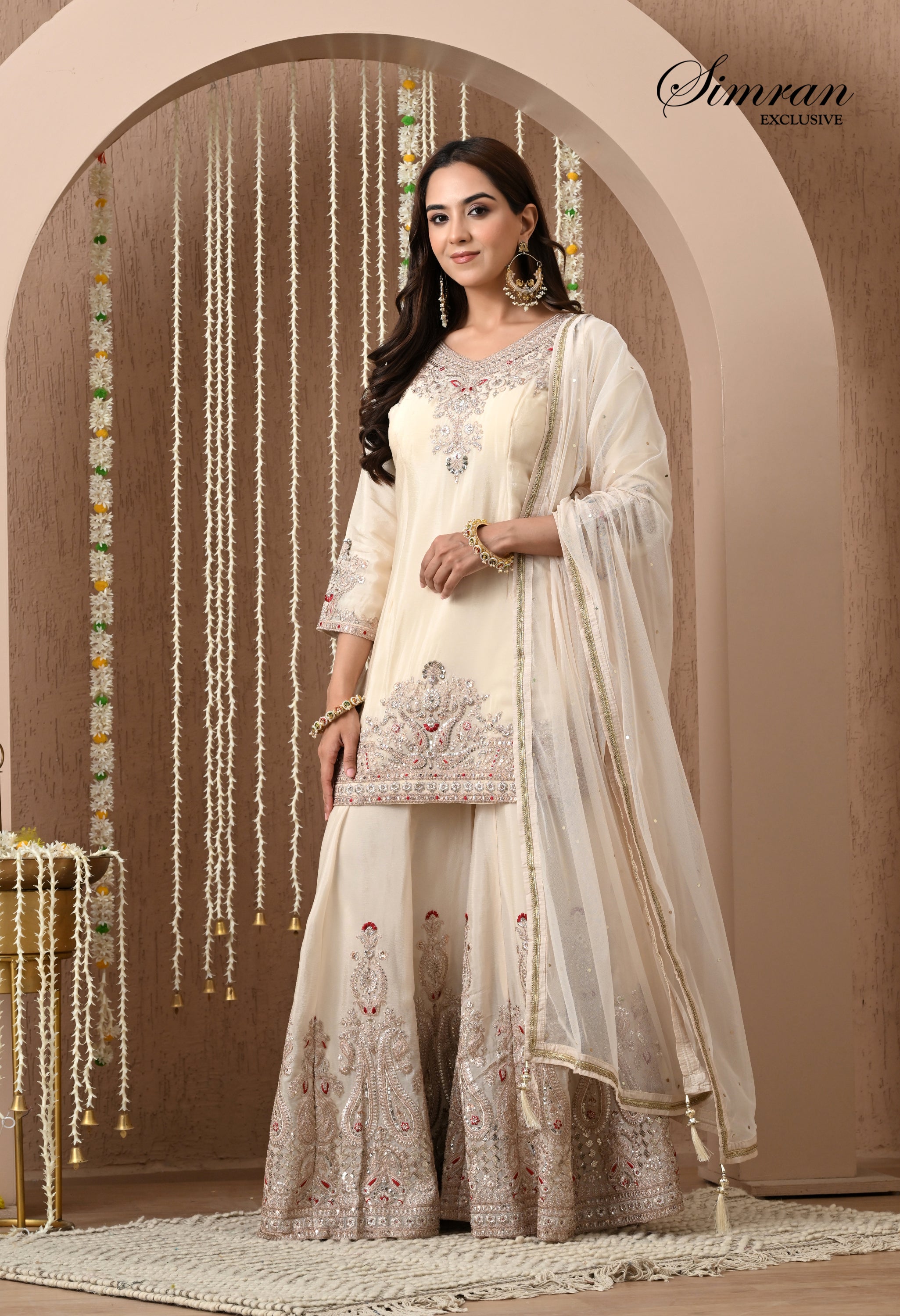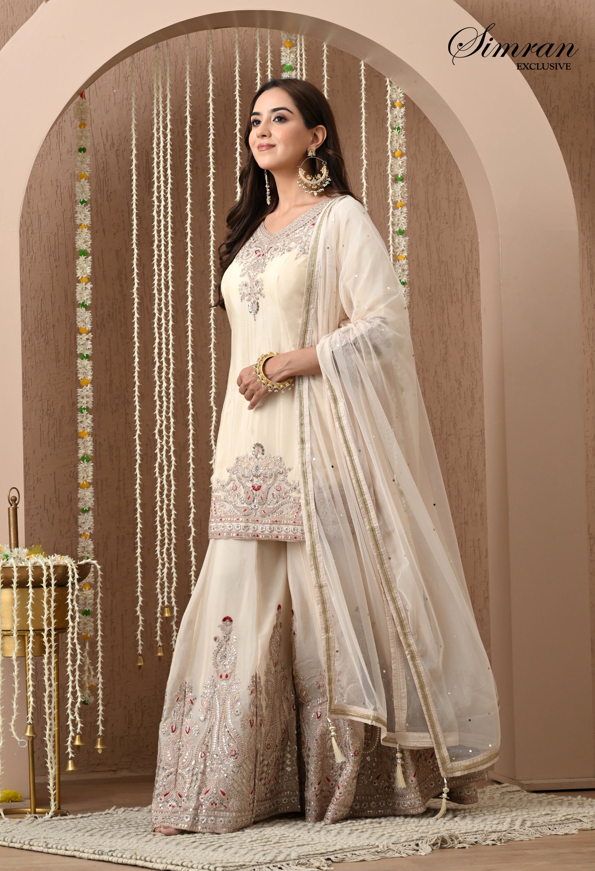 sharara bottom, featuring elaborate floral jaal embroidery