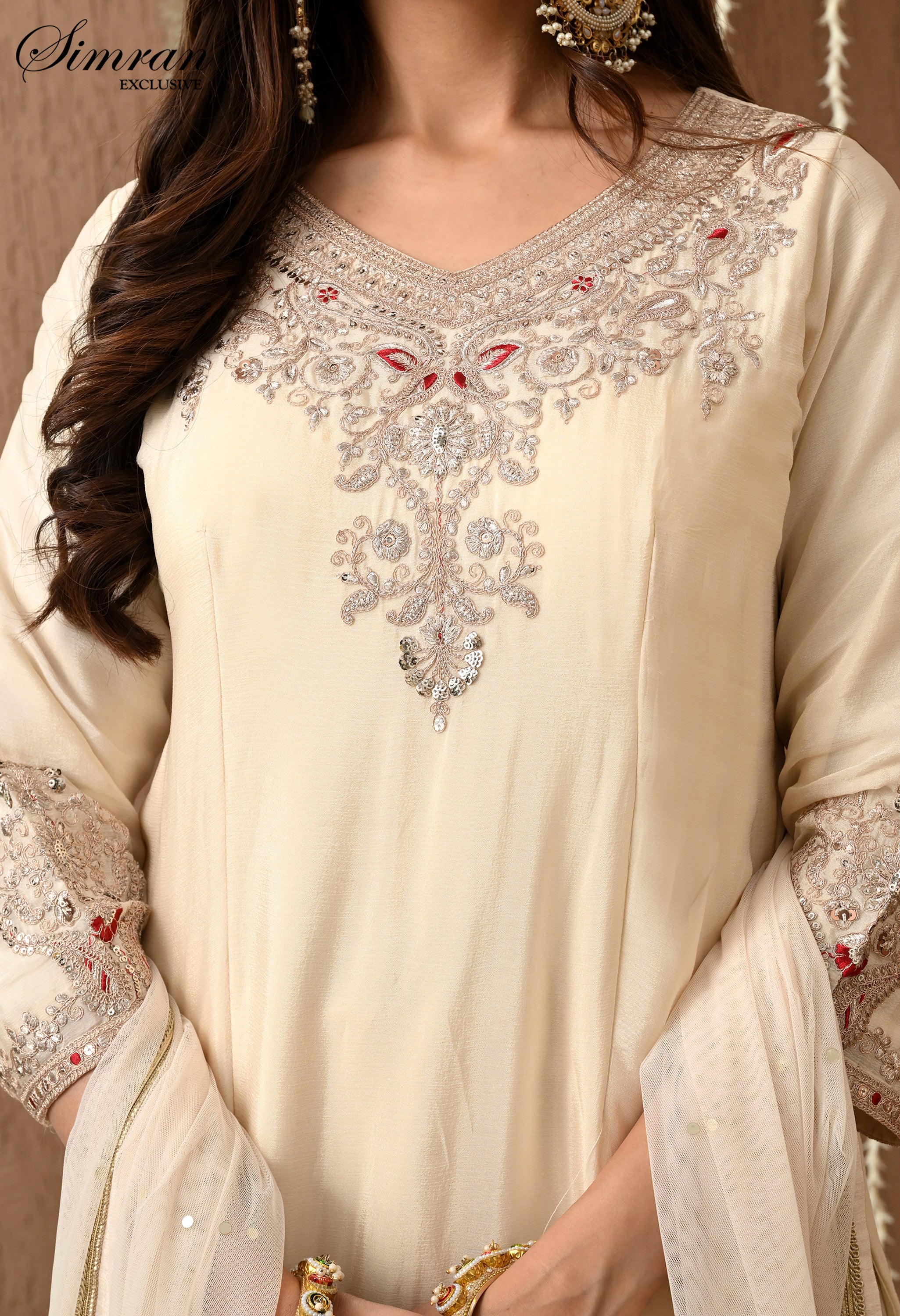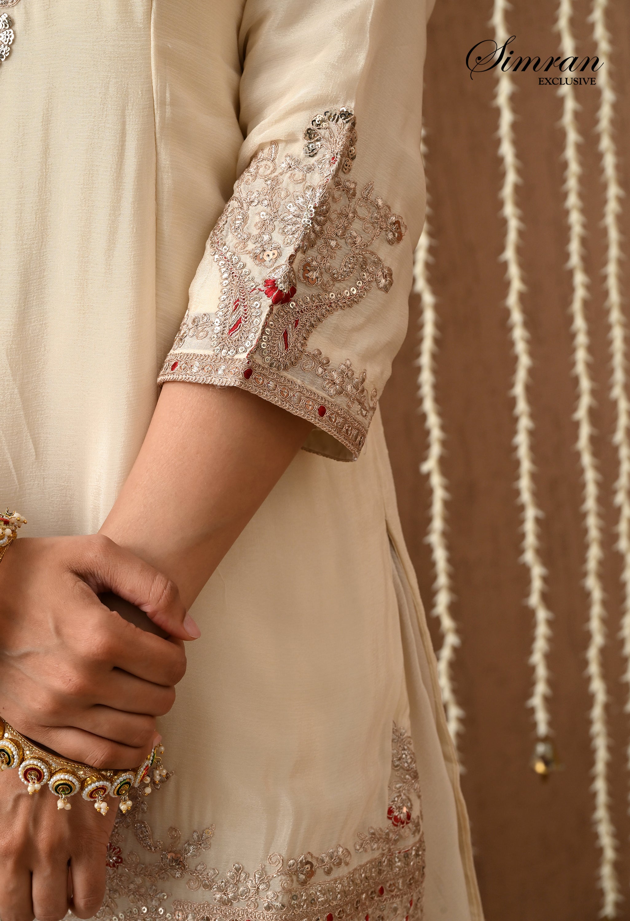 3/4th straight sleeves, embroidered at the borders for a graceful finish.