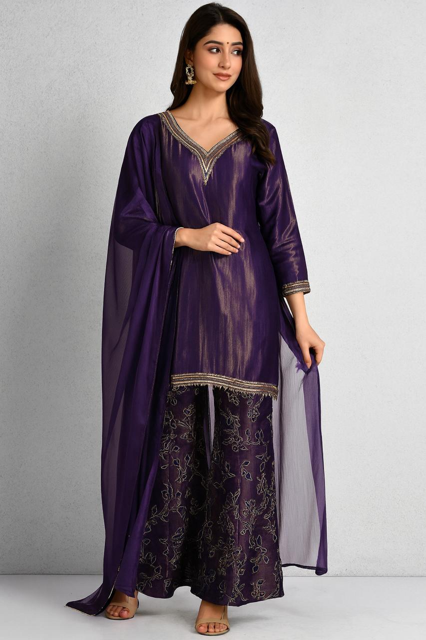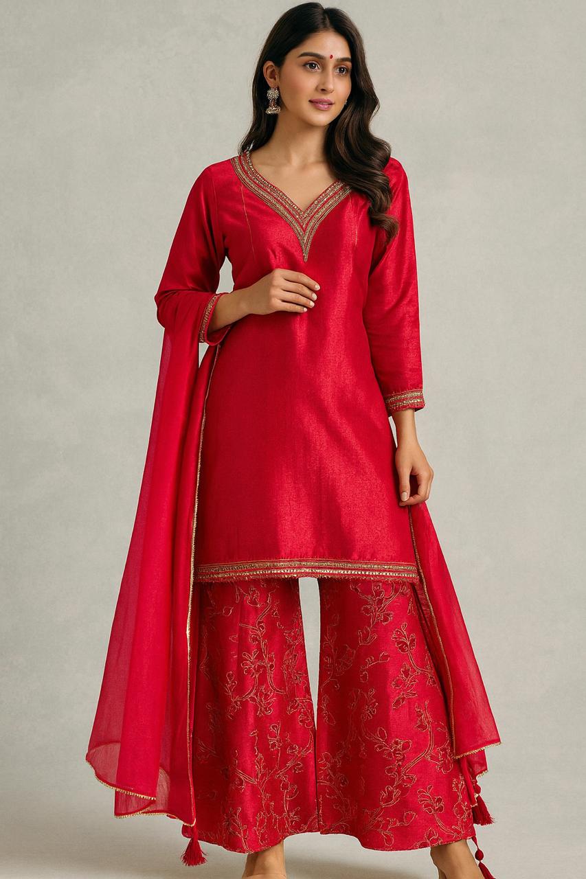 Turn heads with this elegant art silk palazzo suit, crafted to blend traditional charm with modern sophistication.