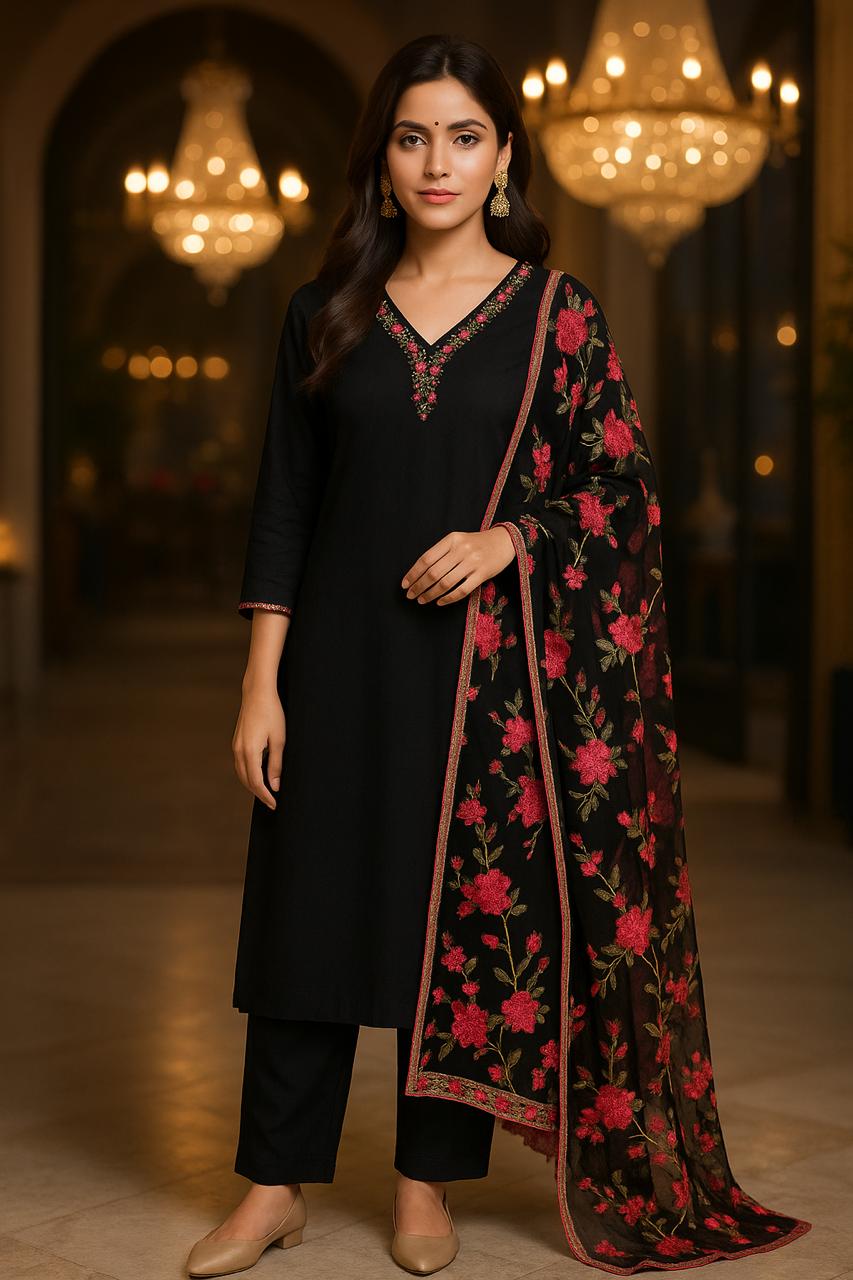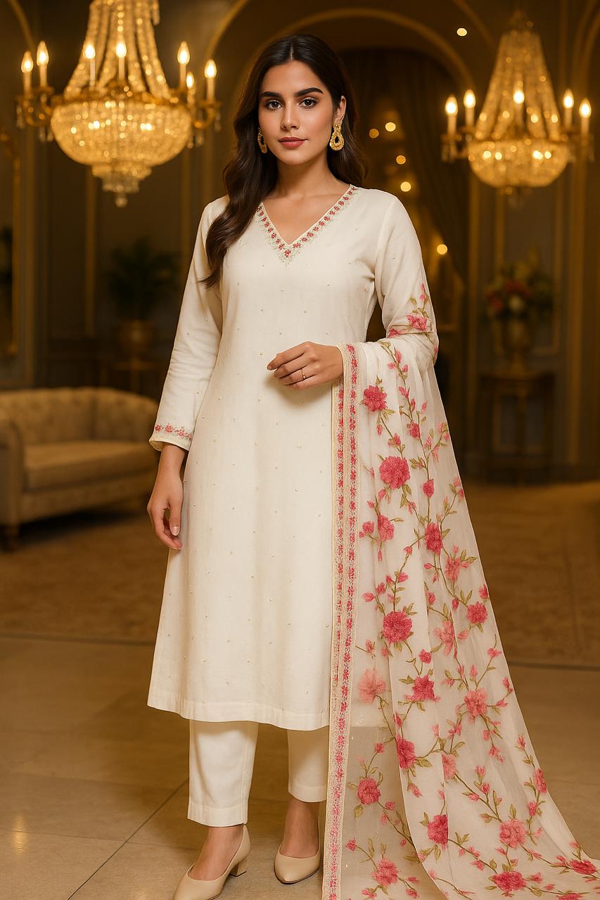 This outfit exudes grace and sophistication, making it ideal for festive gatherings, elegant daytime events, and semi-formal parties.