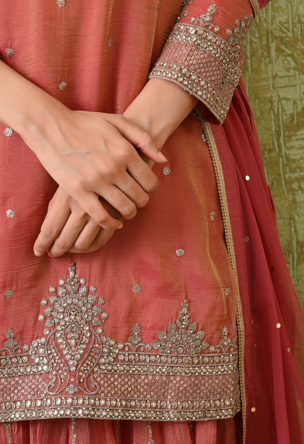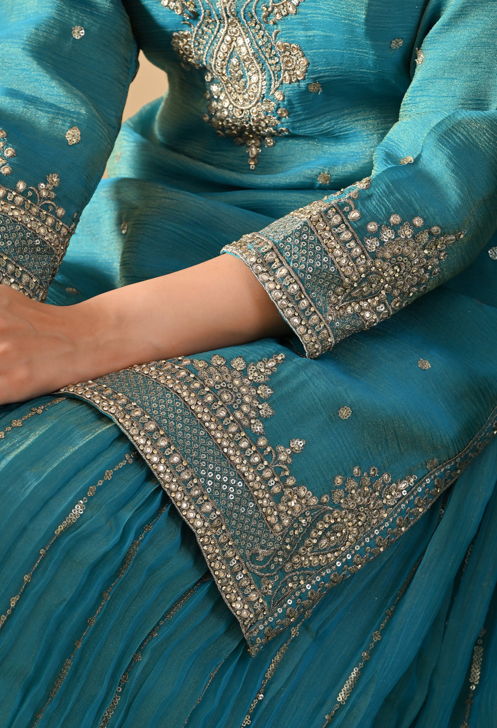 Elevate your festive look with our Diwali Dhamaka Elegance lehenga Set. an intricately embroidered kurta with delicate silver zari and sequin work. Paired with a flowy lehenga and a matching dupatta .