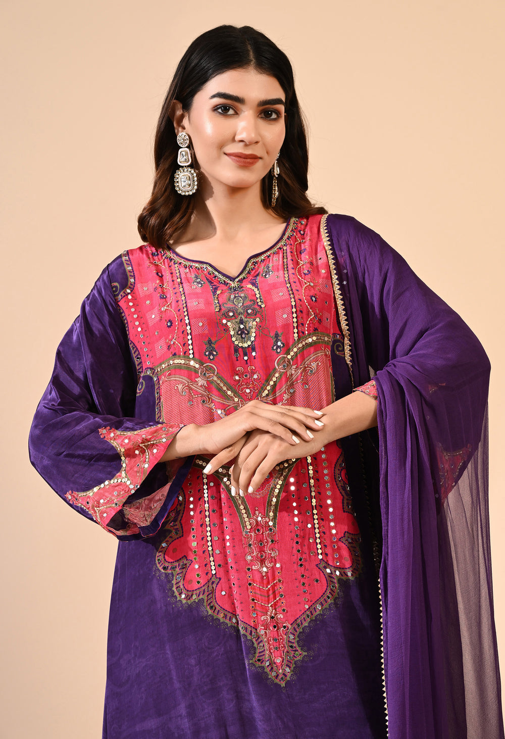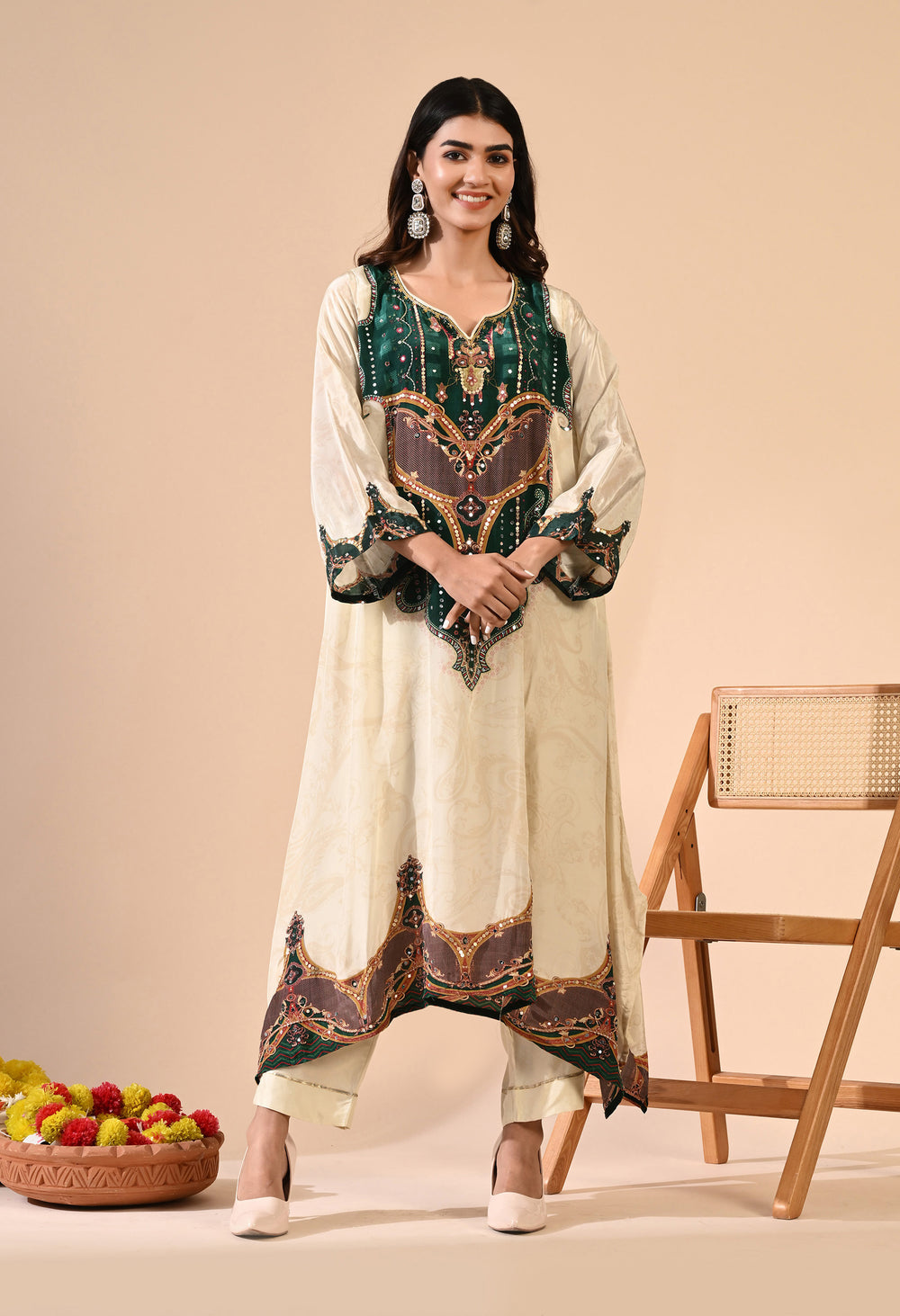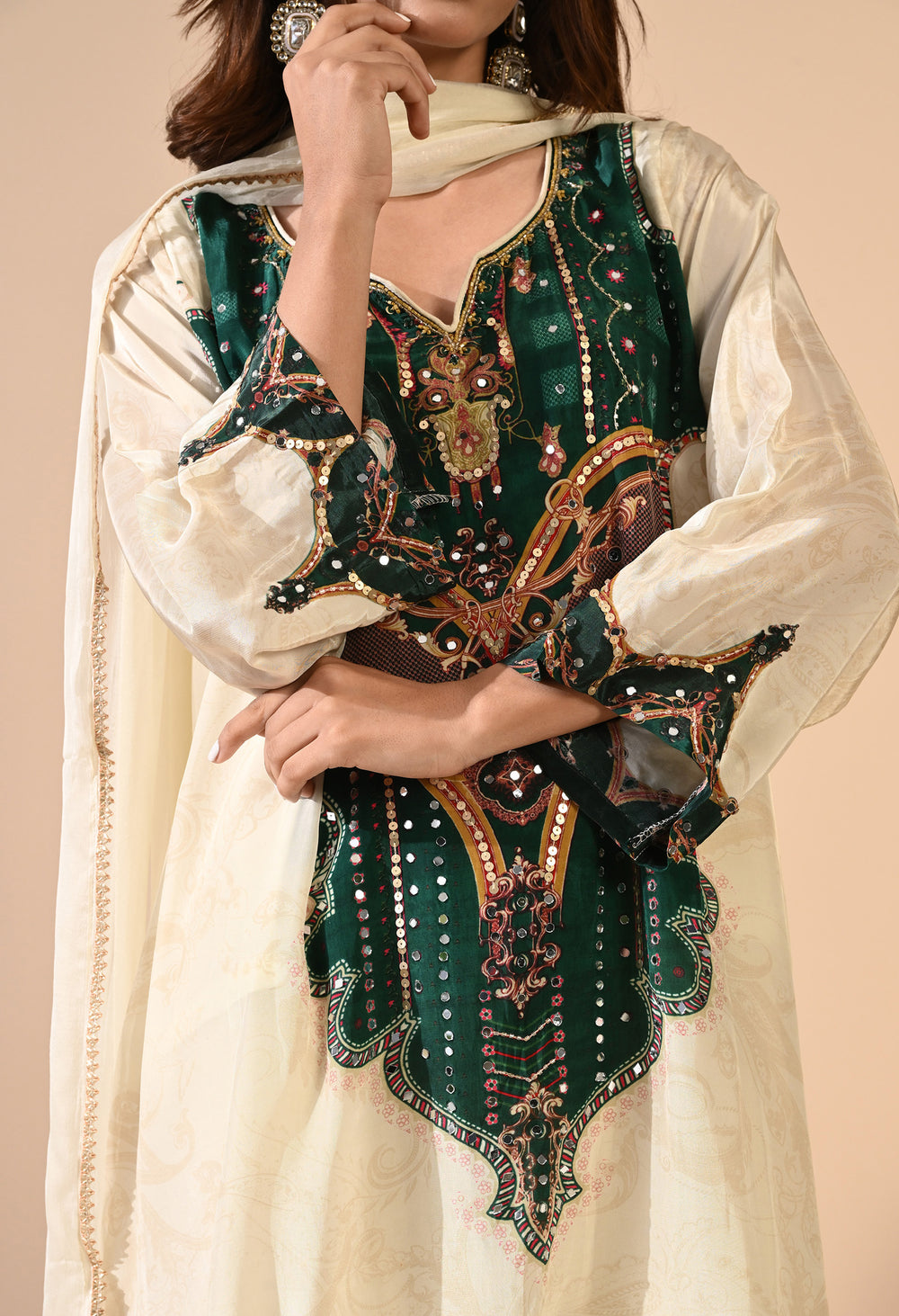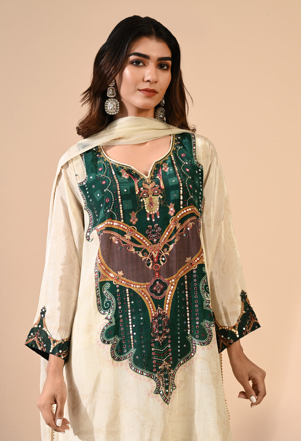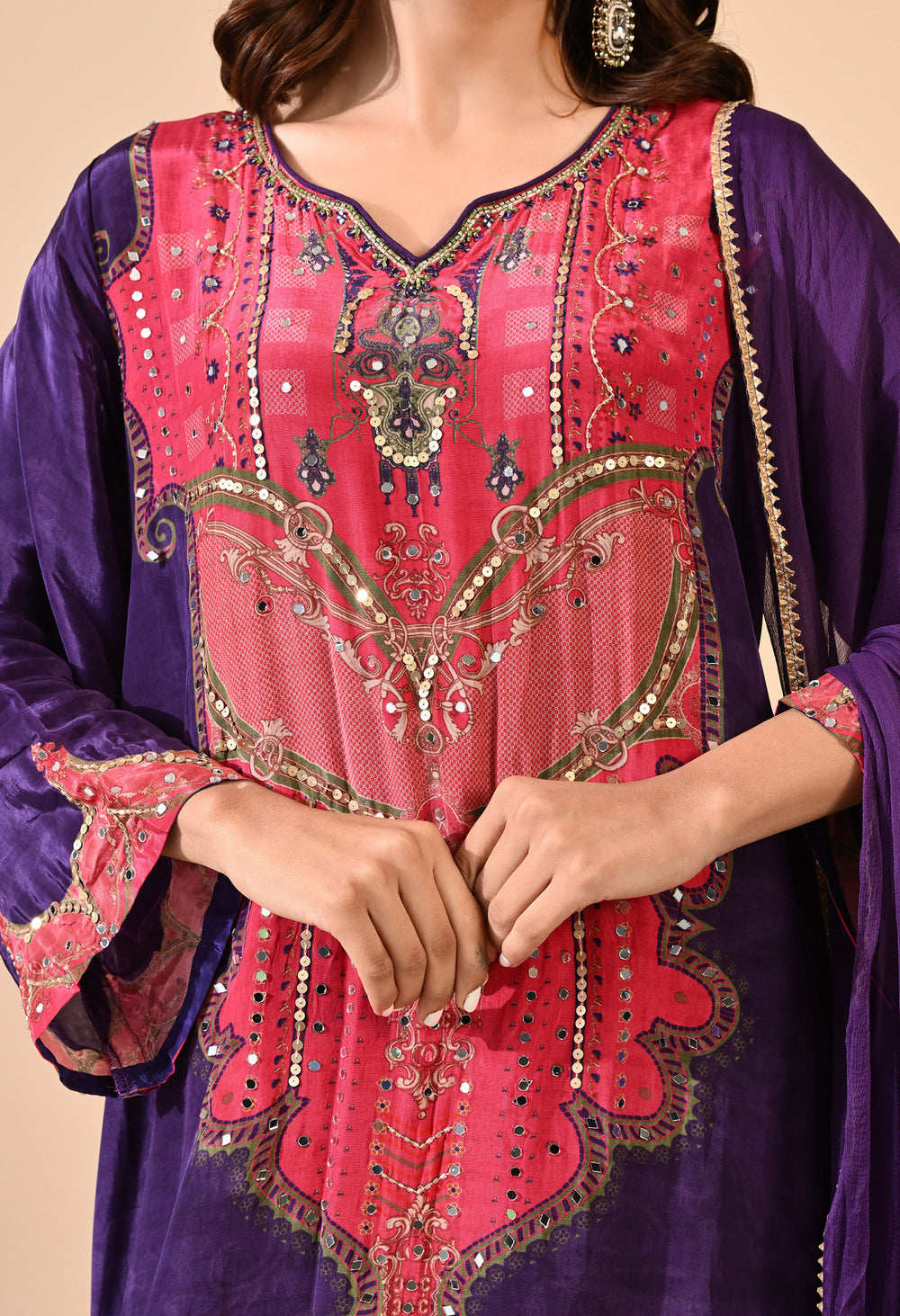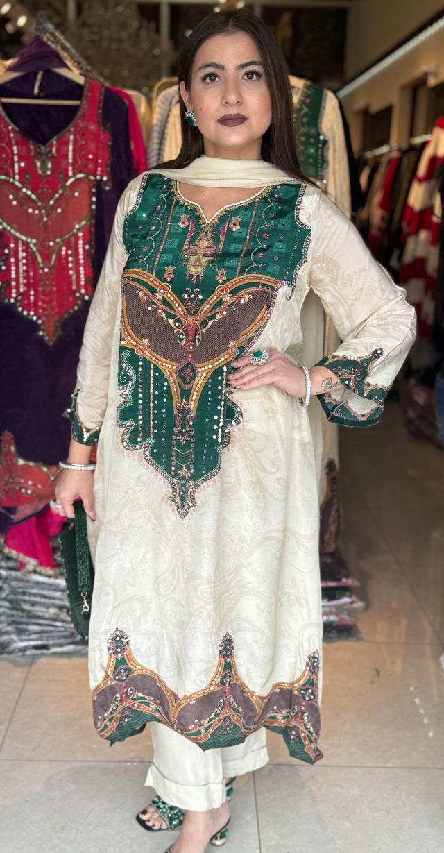 Pure crepe Egyptian print with hand work detailing