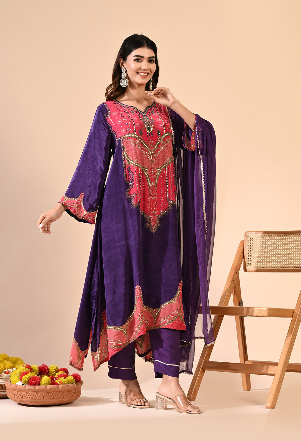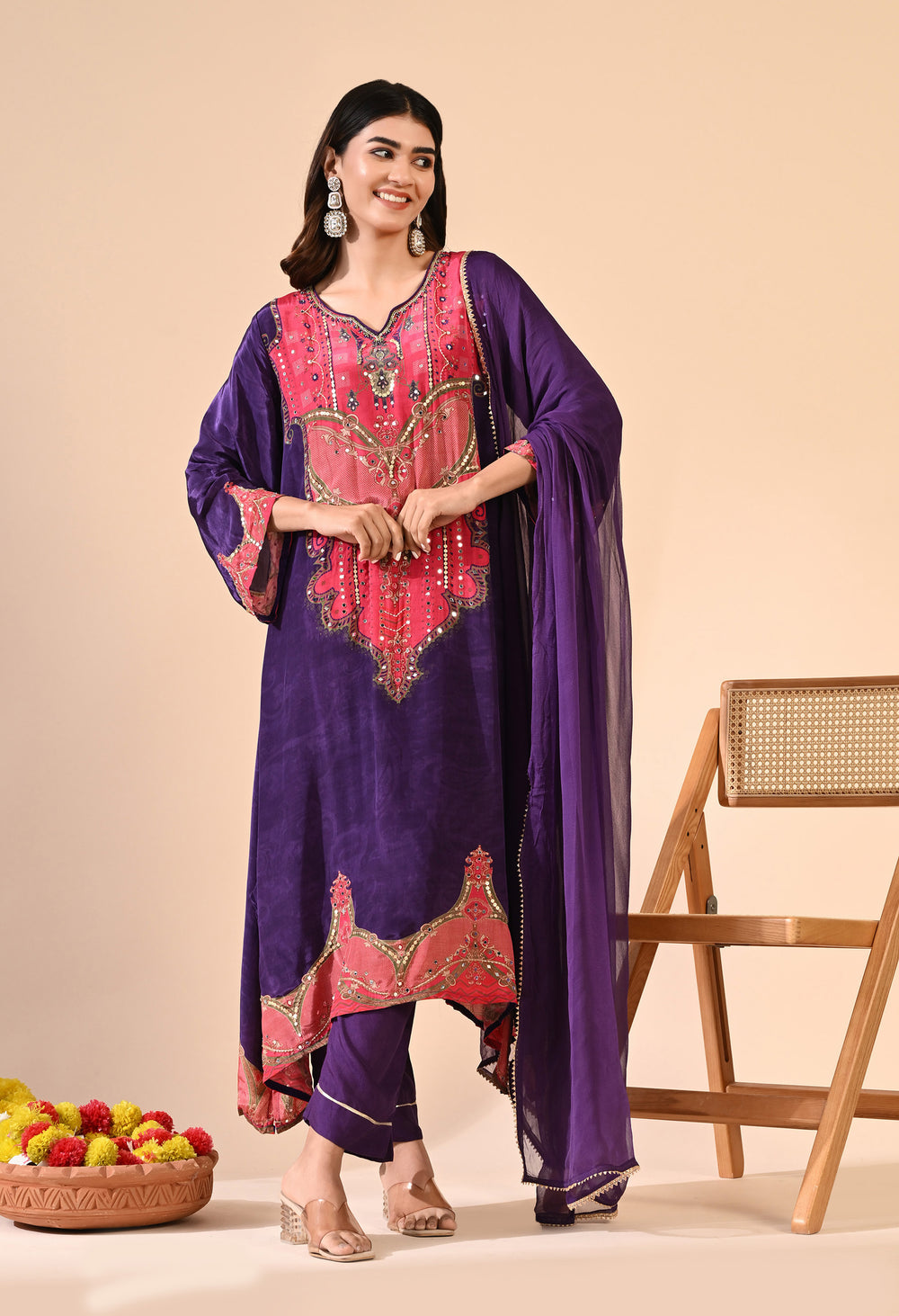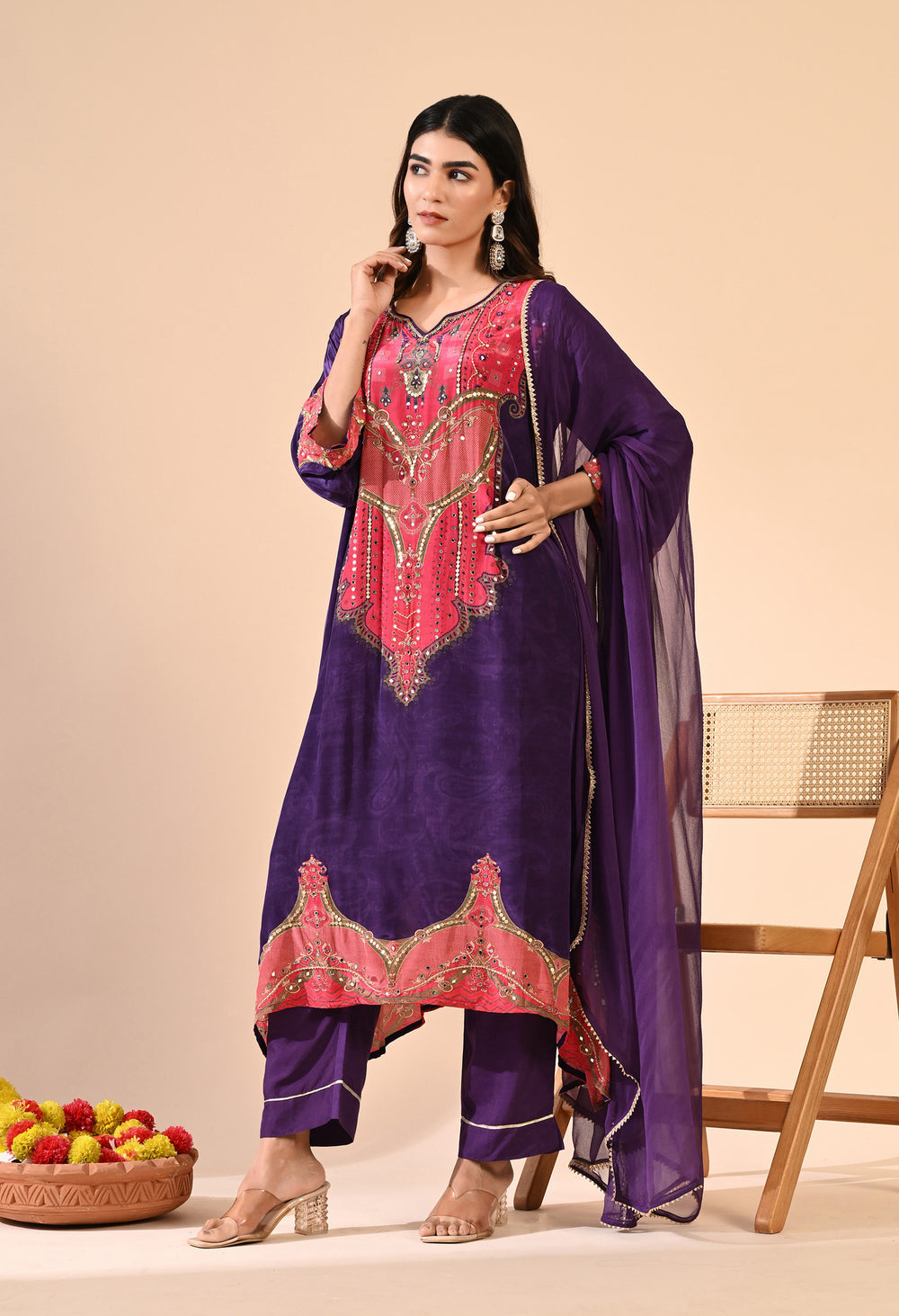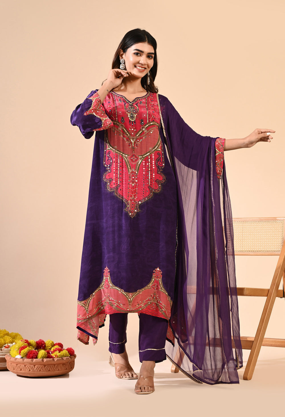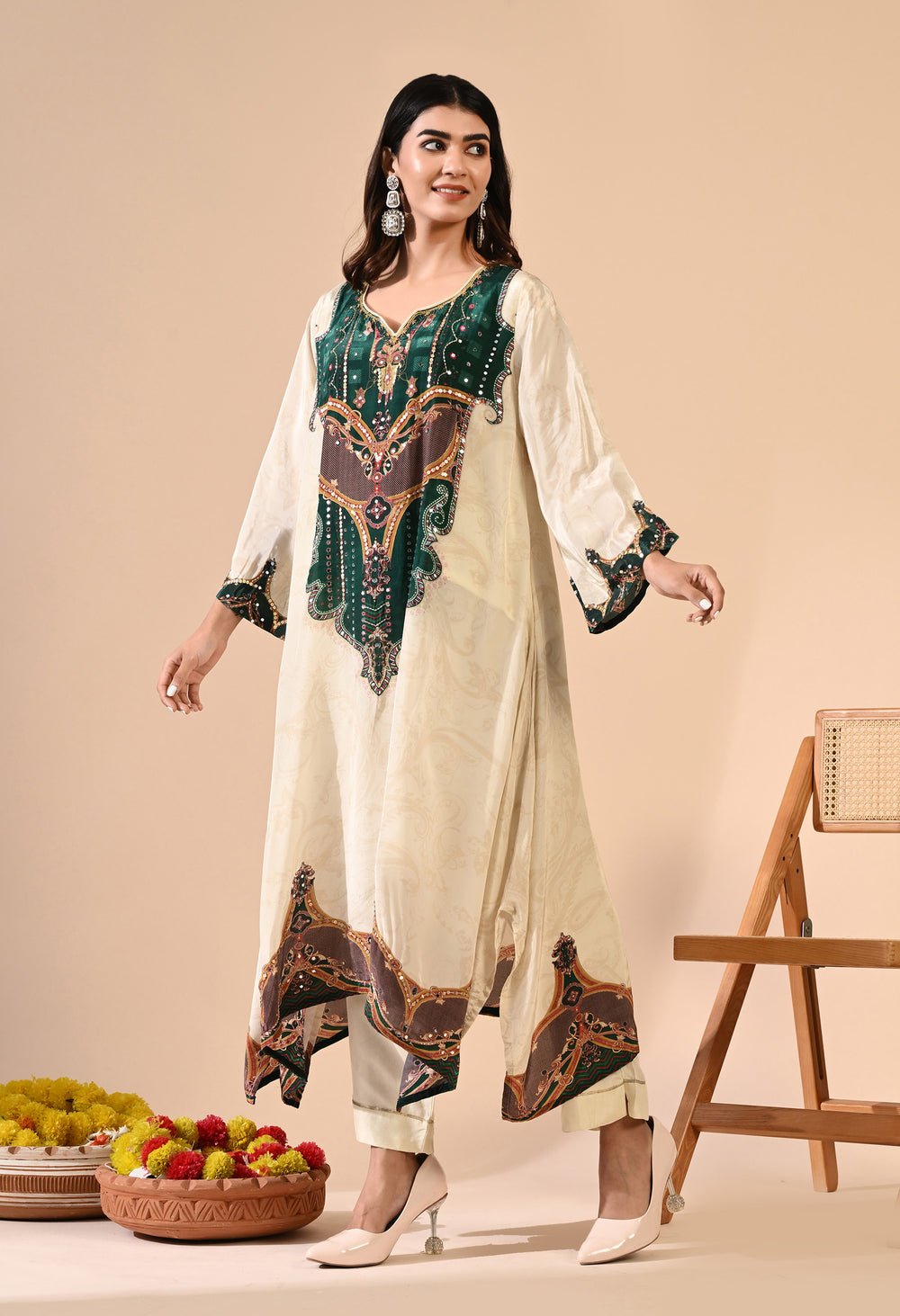 Pure crepe Egyptian print with hand work detailing