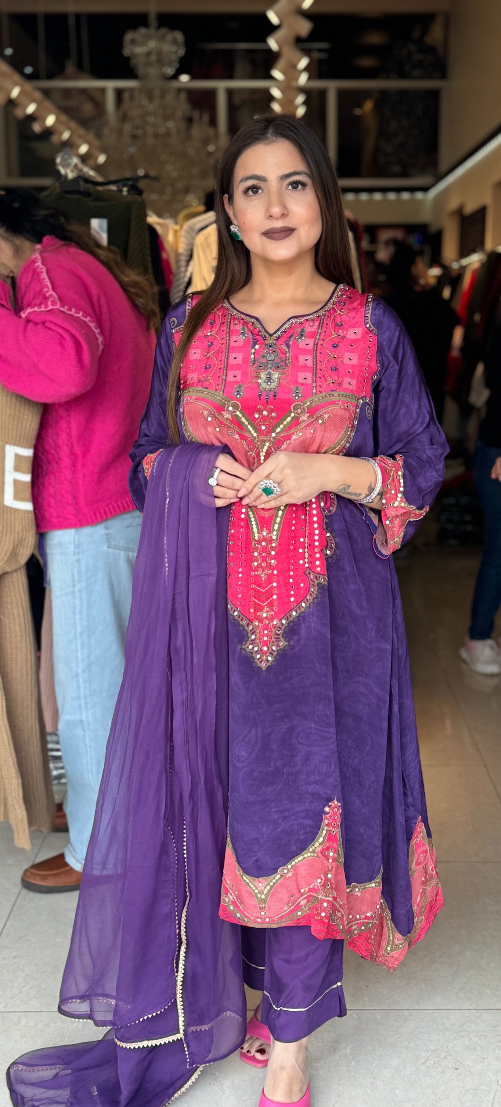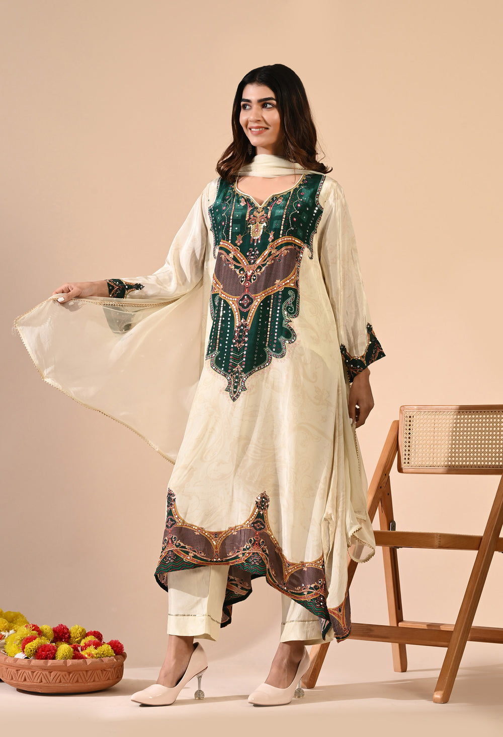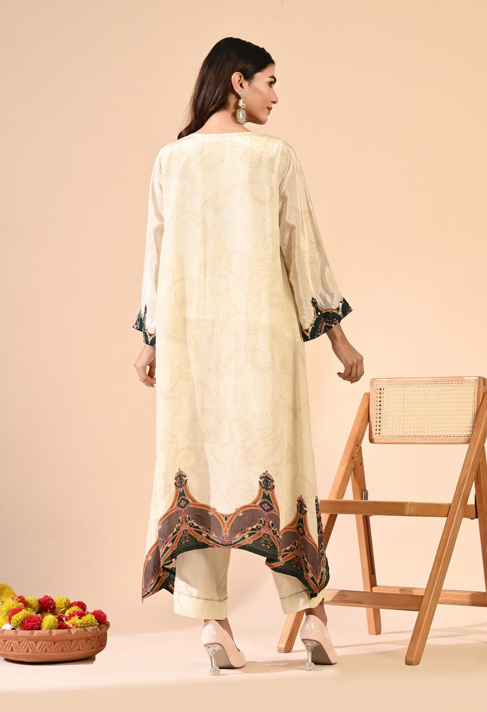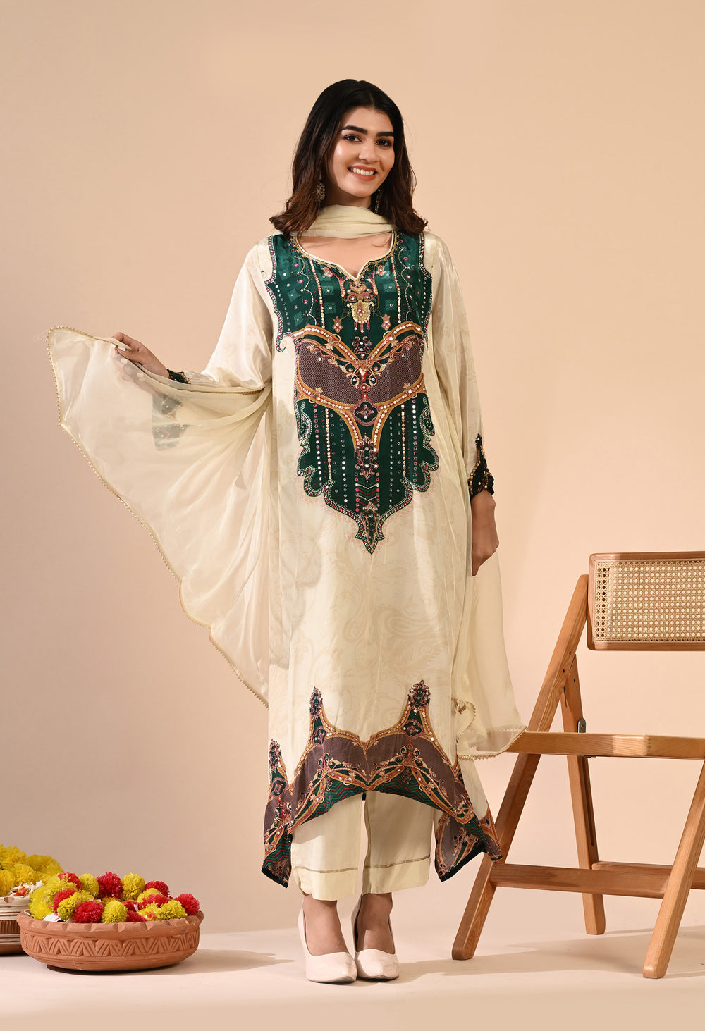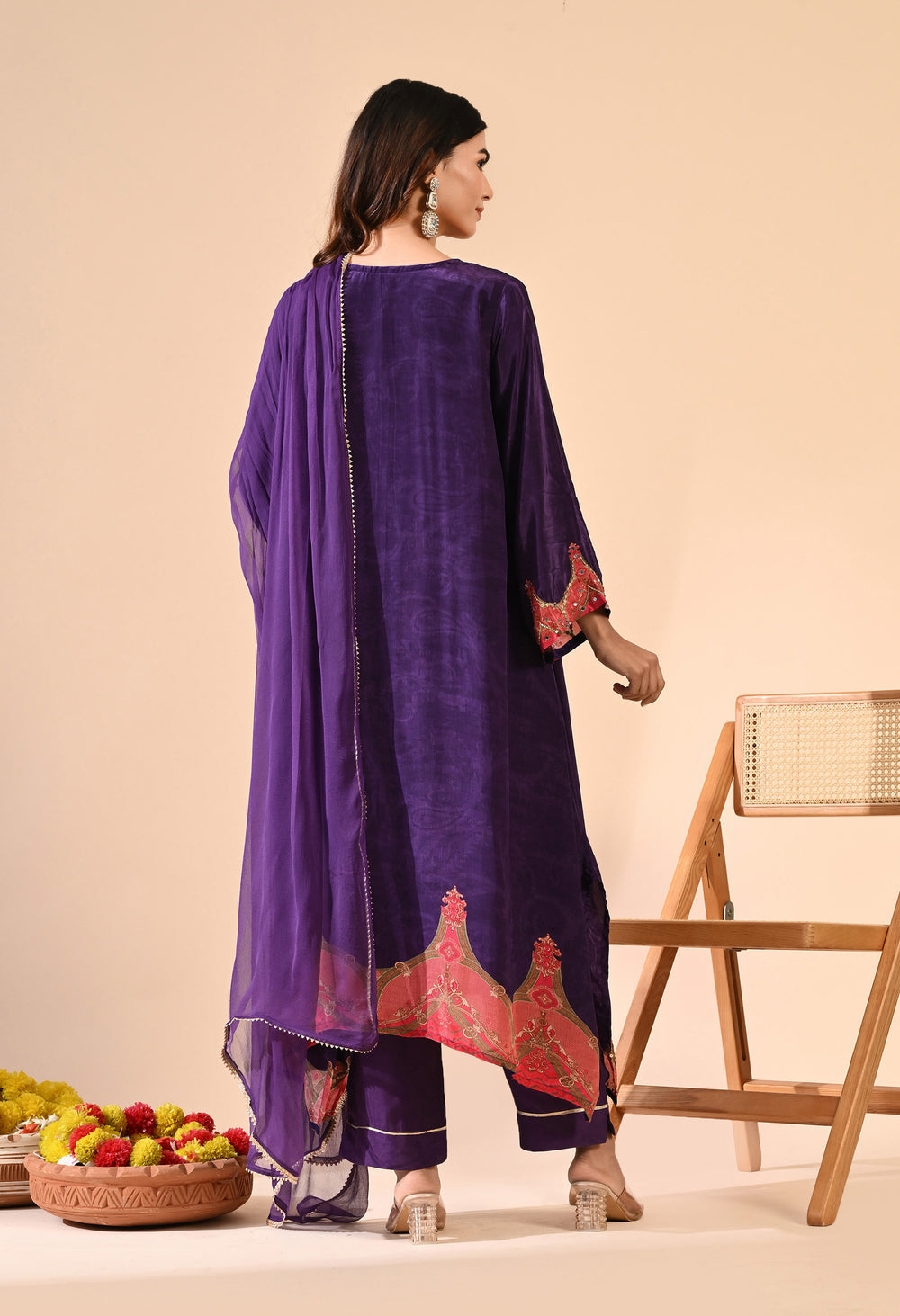 Pure crepe Egyptian print with hand work detailing