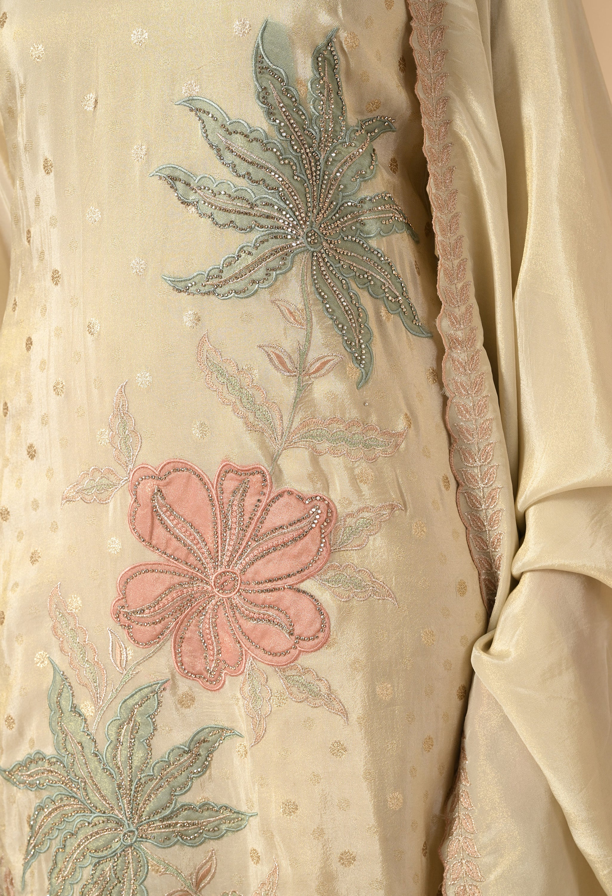 Gulzar Suit – Hand-Embroidered Cream Silk Ensemble