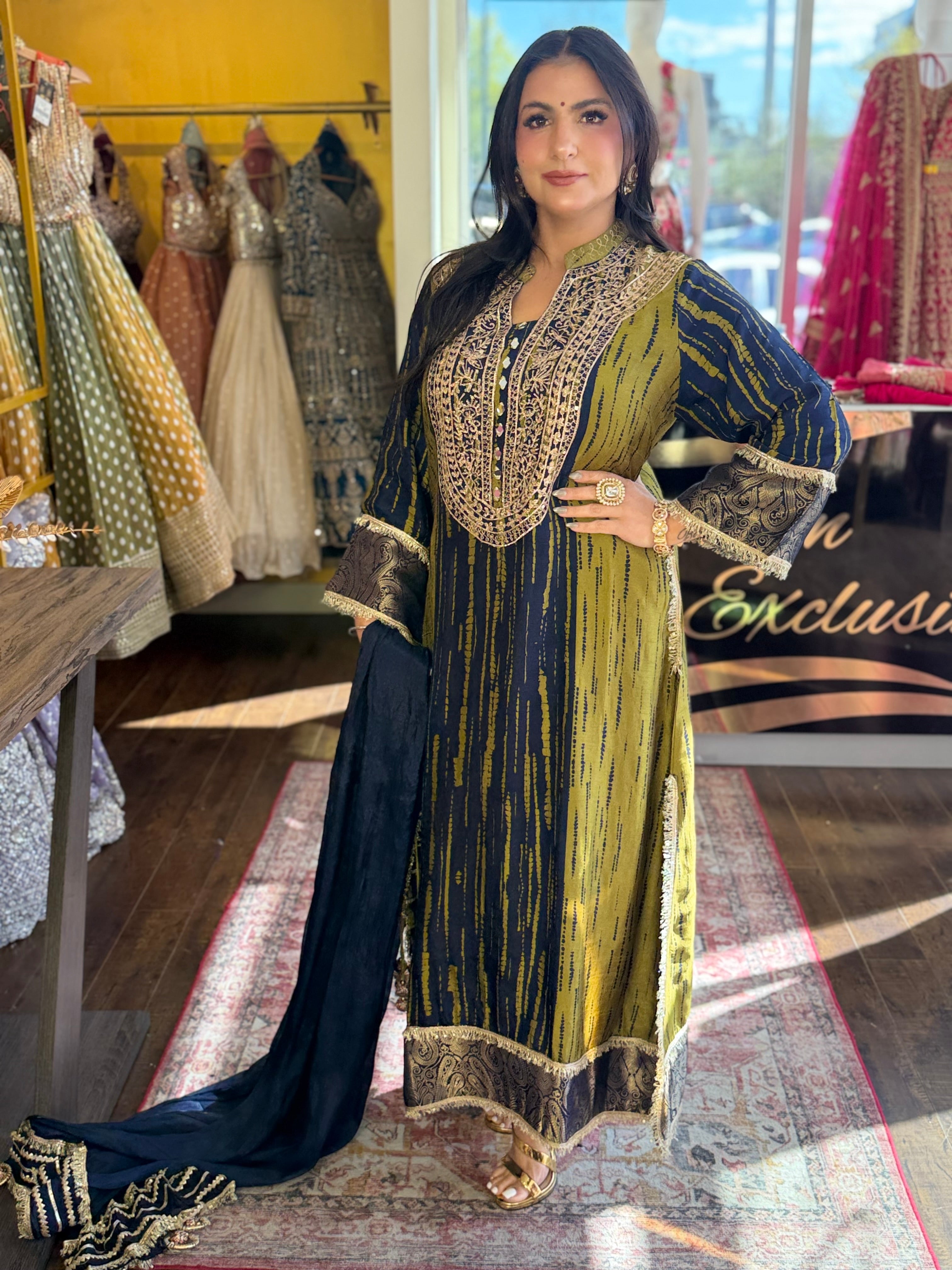 Paired with a matching straight bottom and a soft flowy dupatta, this outfit perfectly balances traditional charm with contemporary style. Ideal for festive gatherings, evening functions, and elegant occasions, this suit offers effortless grace.