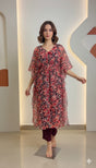 A chic and flowy printed kaftan-style cord set designed for effortless elegance and modern comfort. This ensemble features a lightweight, sheer floral overlay with a soft inner lining, offering a stylish layered look. The kaftan top comes with a flattering V-neckline and a gathered drawstring waist, enhancing the silhouette while providing a relaxed, breezy fit. Paired with solid straight-fit pants, this set is perfect for brunch outings, vacations, casual gatherings, or stylish daywear.