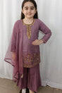Graceful and festive, this kids sharara suit set is tailored from fine georgette fabric, known for its lightweight texture and soft drape — perfect for young girls’ comfort.