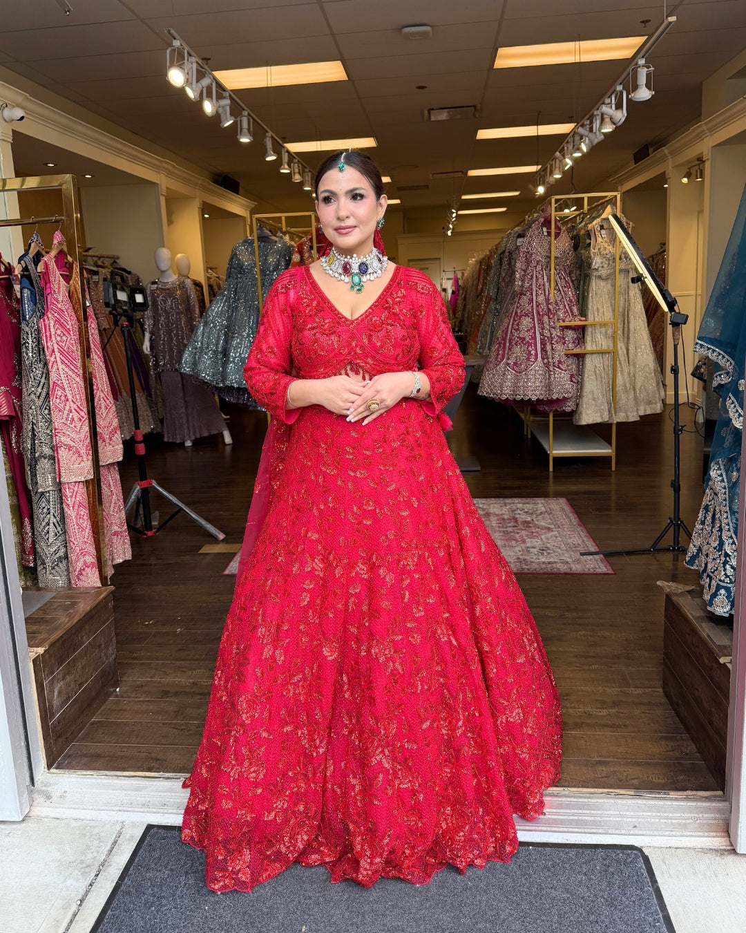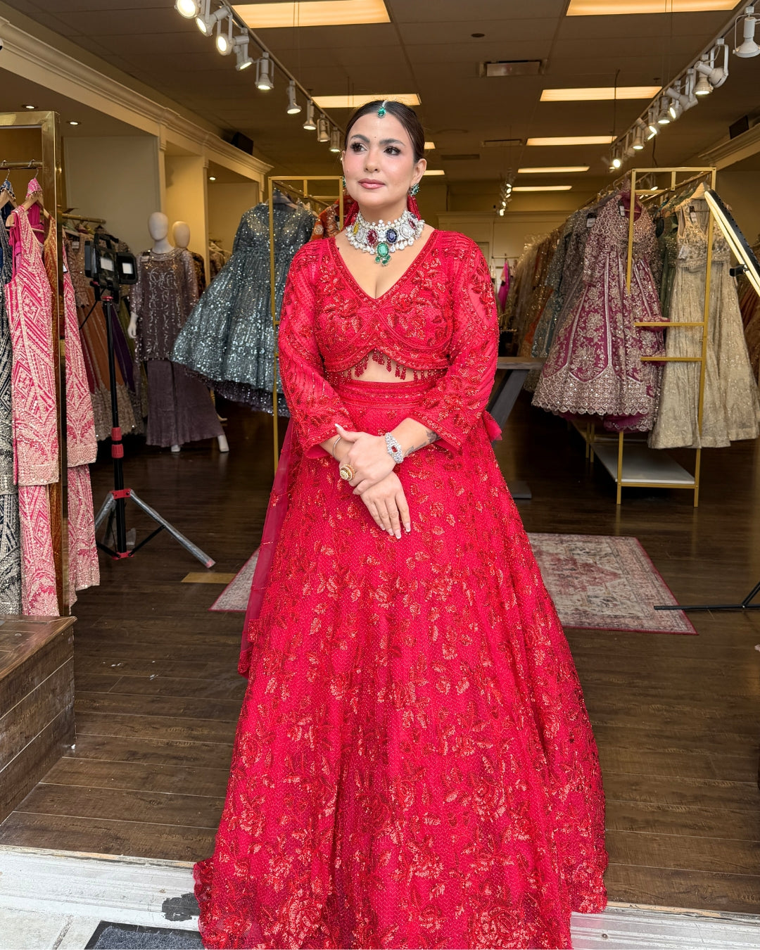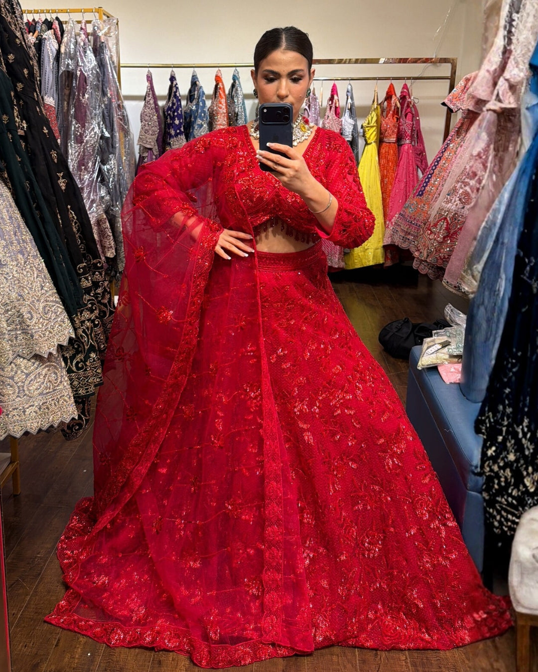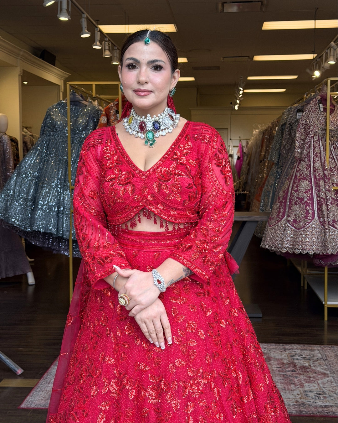Bottom: Flared lehenga skirt with rich embroidered detailing
