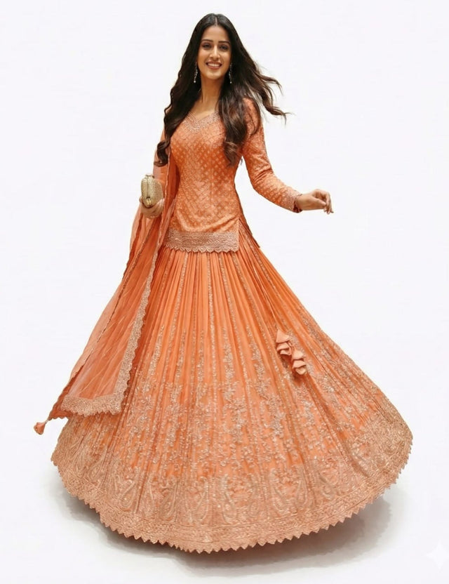 Bottom: Flared embroidered lehenga with broad hem detailing