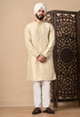 Stay classy in this cream kurta pyjama with detailing. Perfect for festive events, weddings, or family gatherings. Made for comfort and style. Available in sizes 38 to 48 for a perfect fit.
