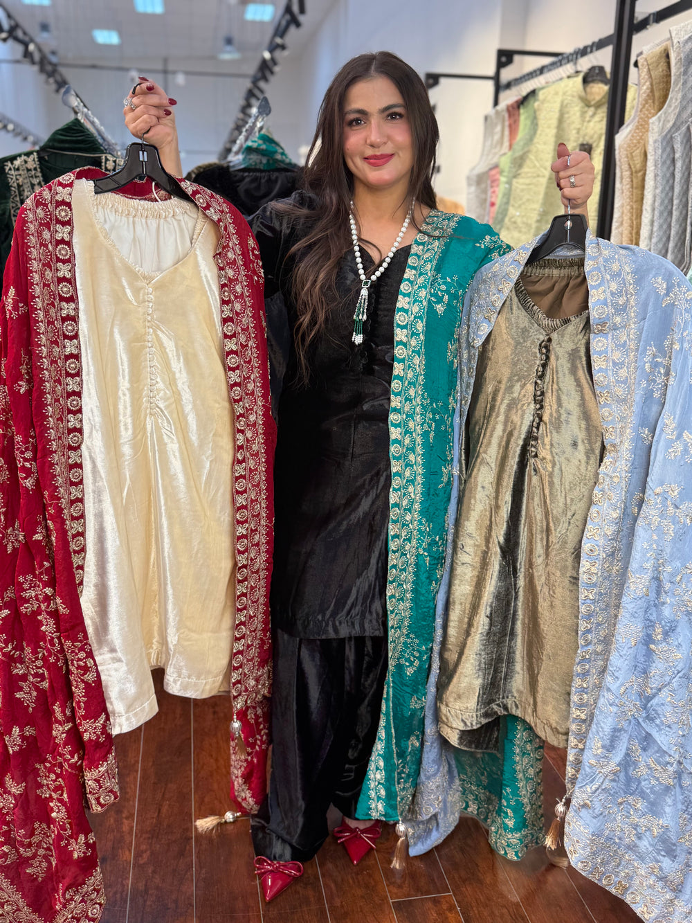 Fabric: Soft Velvet Fabric (Kurta and Bottom); Velvet Shawl with Heavy Embroidery