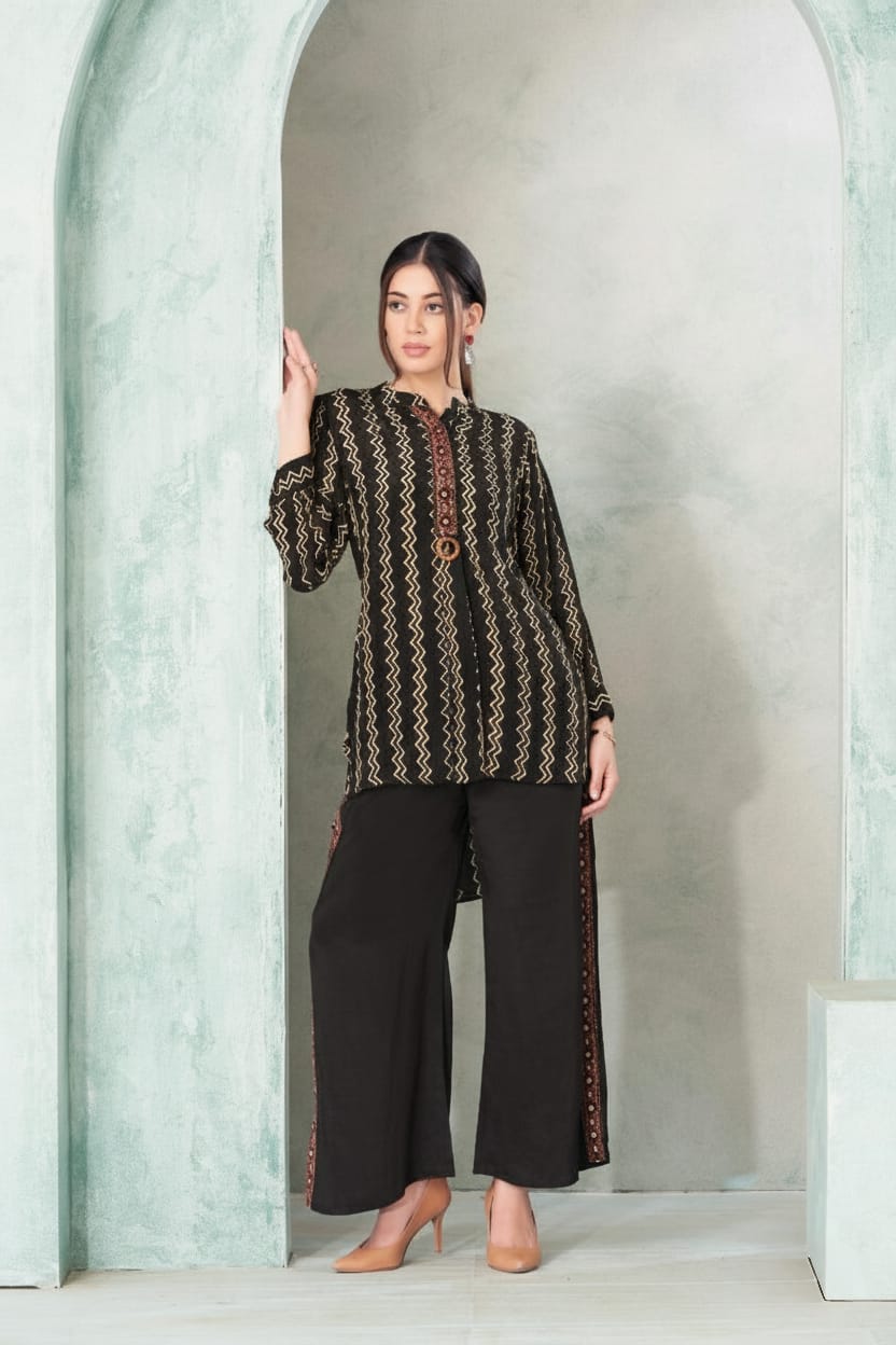 A perfect fusion of comfort and contemporary style, this printed co-ord set is ideal for casual lunches, festive gatherings, or office wear. Pair it with heels and statement earrings for a classy, confident look