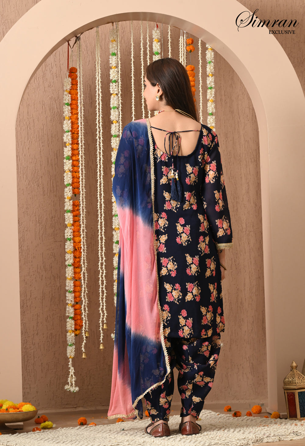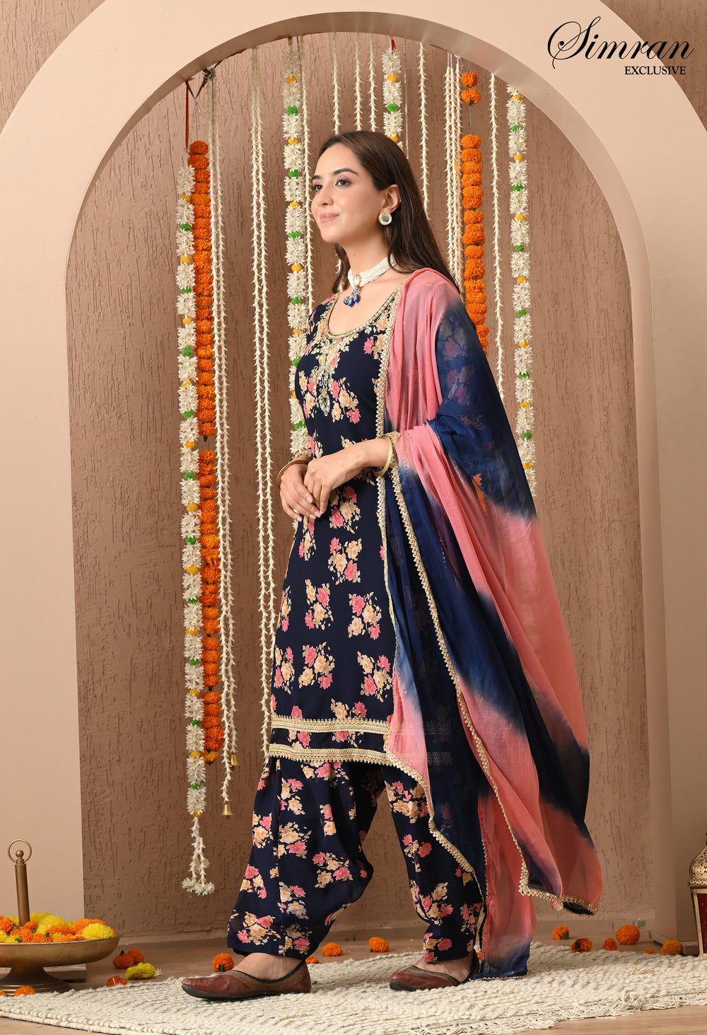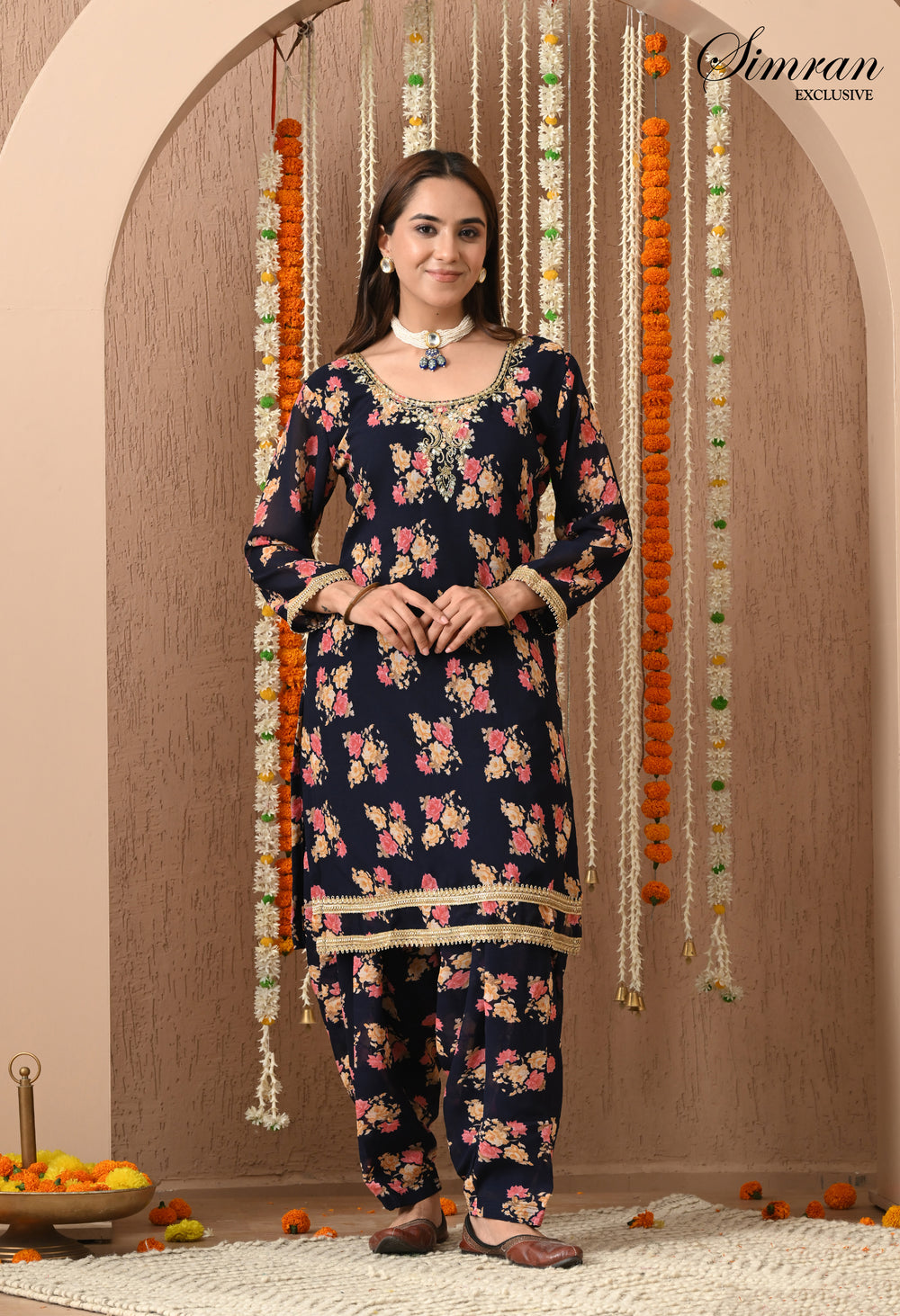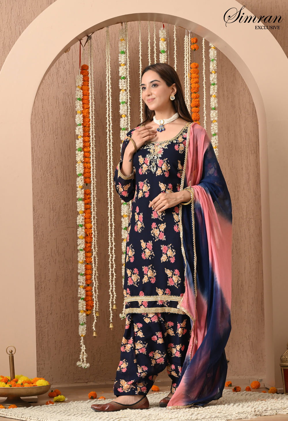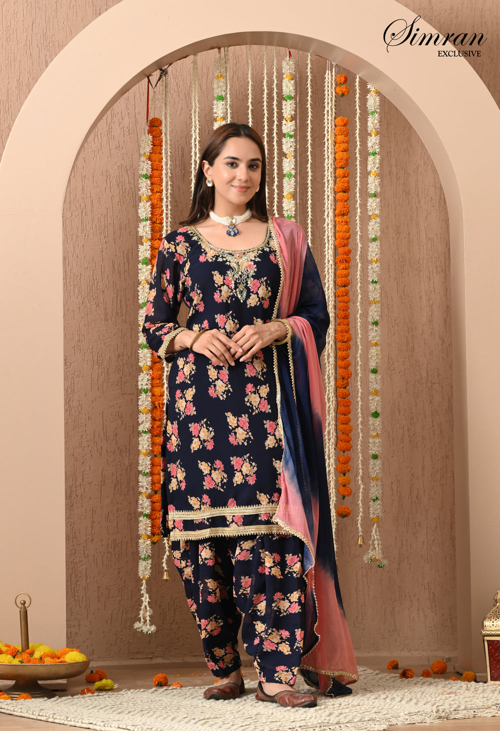 Bring festive charm and traditional elegance to your wardrobe with this navy blue floral Patiala suit set. With its rich floral print and stylish silhouette, this outfit is perfect for festive occasions, casual gatherings, and cultural celebrations.