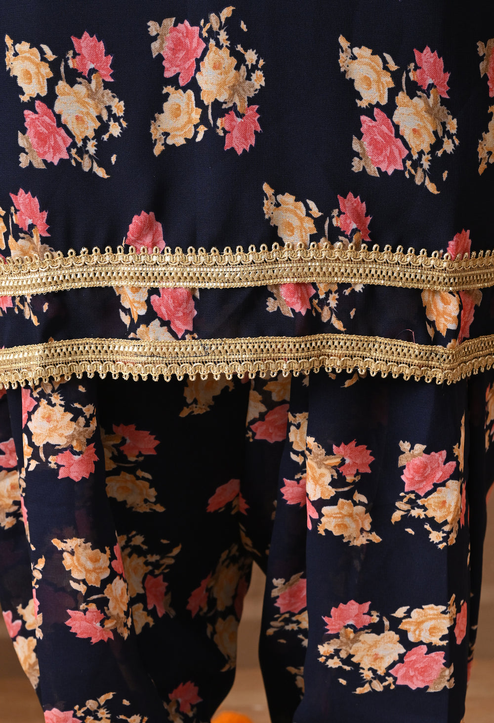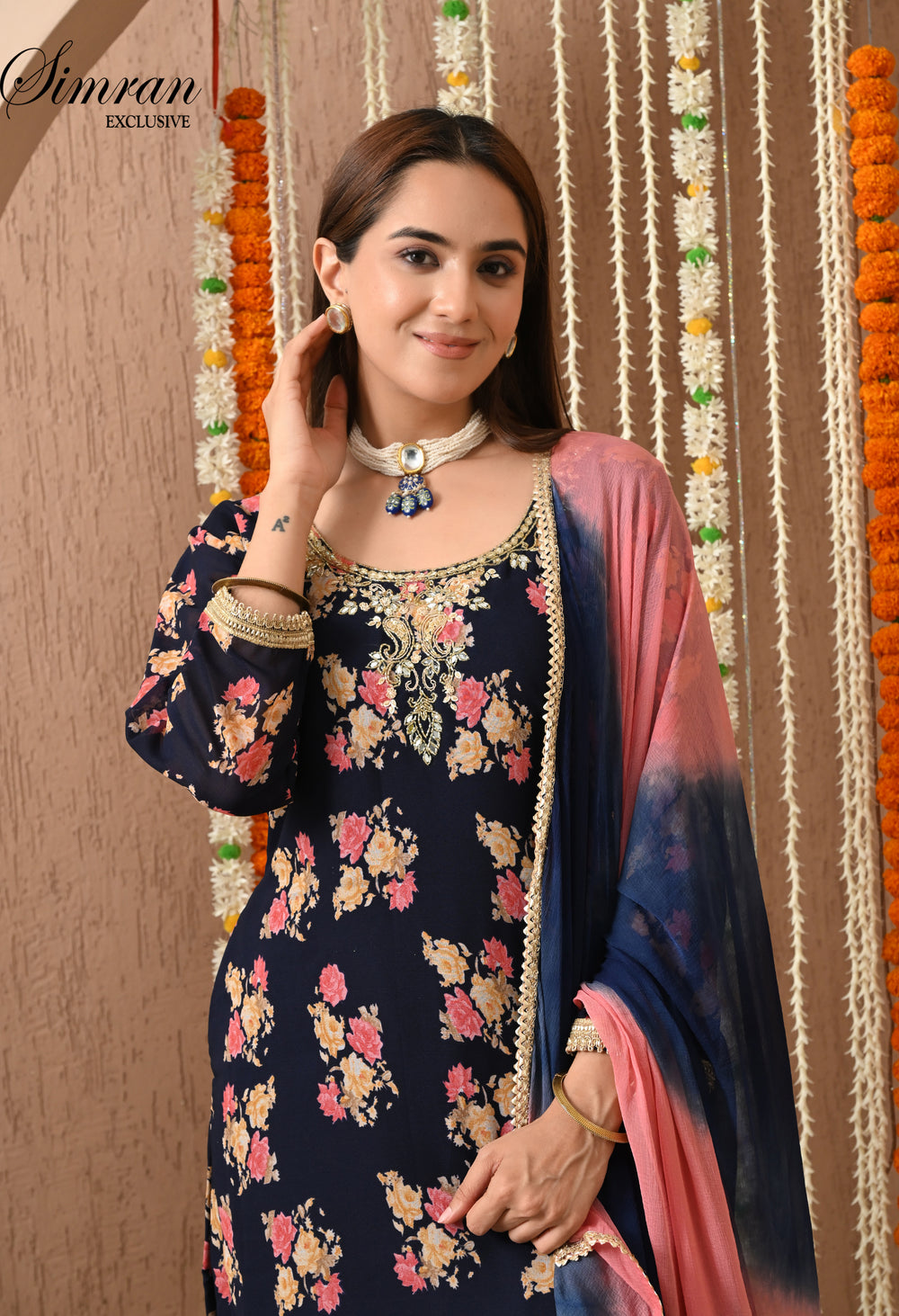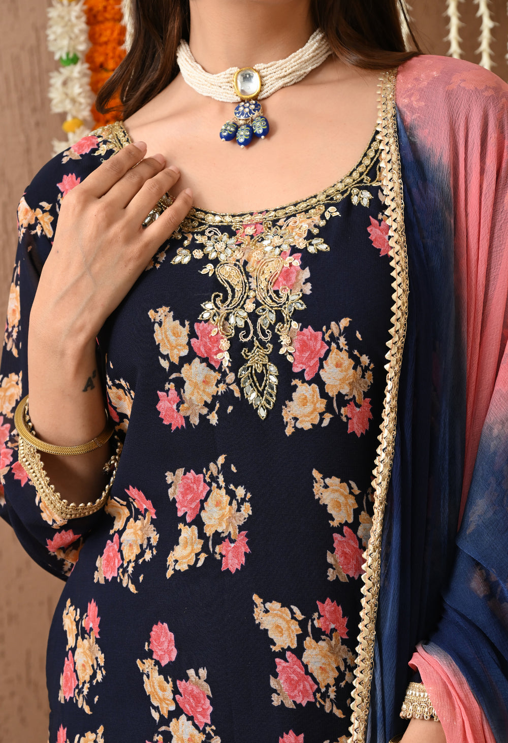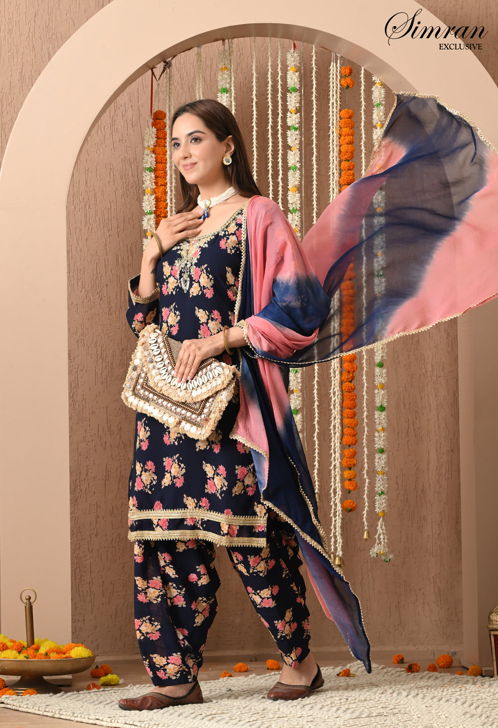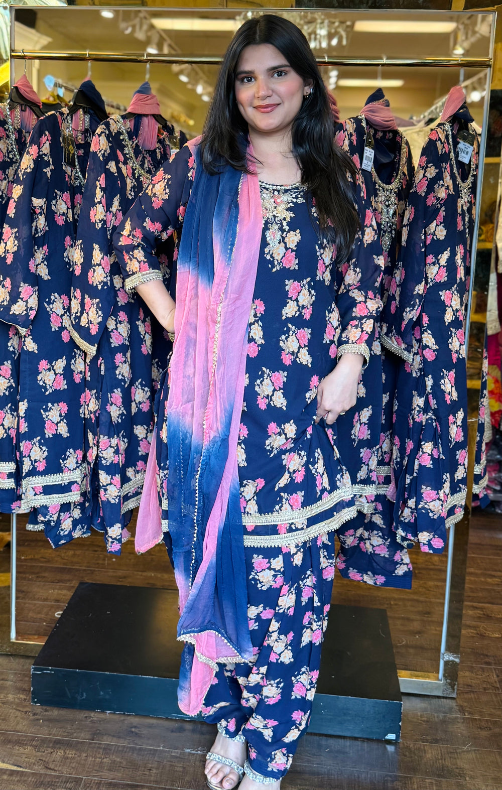 Bring festive charm and traditional elegance to your wardrobe with this navy blue floral Patiala suit set. With its rich floral print and stylish silhouette, this outfit is perfect for festive occasions, casual gatherings, and cultural celebrations.