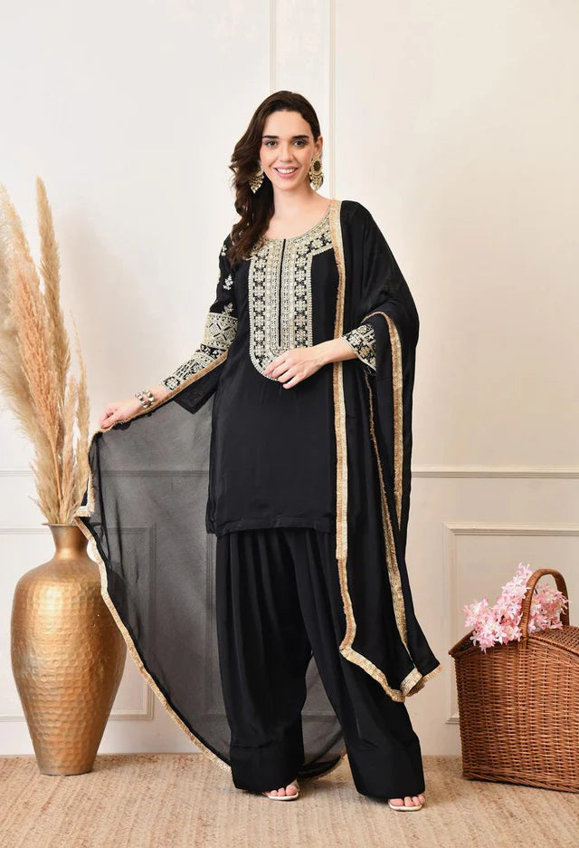 Step into timeless elegance with this vibrant embroidered Farshi suit set