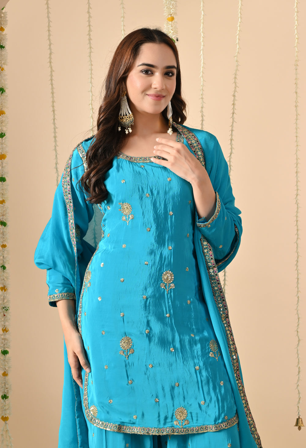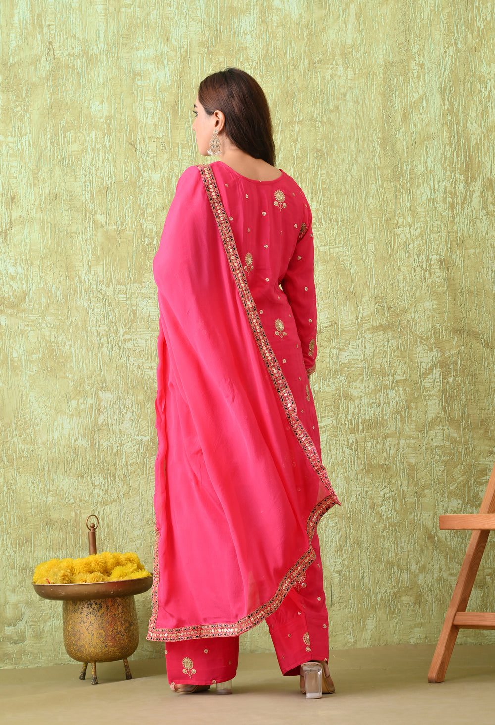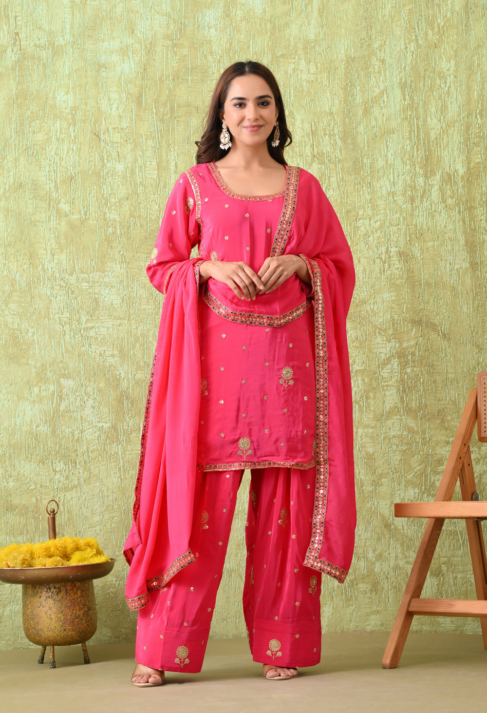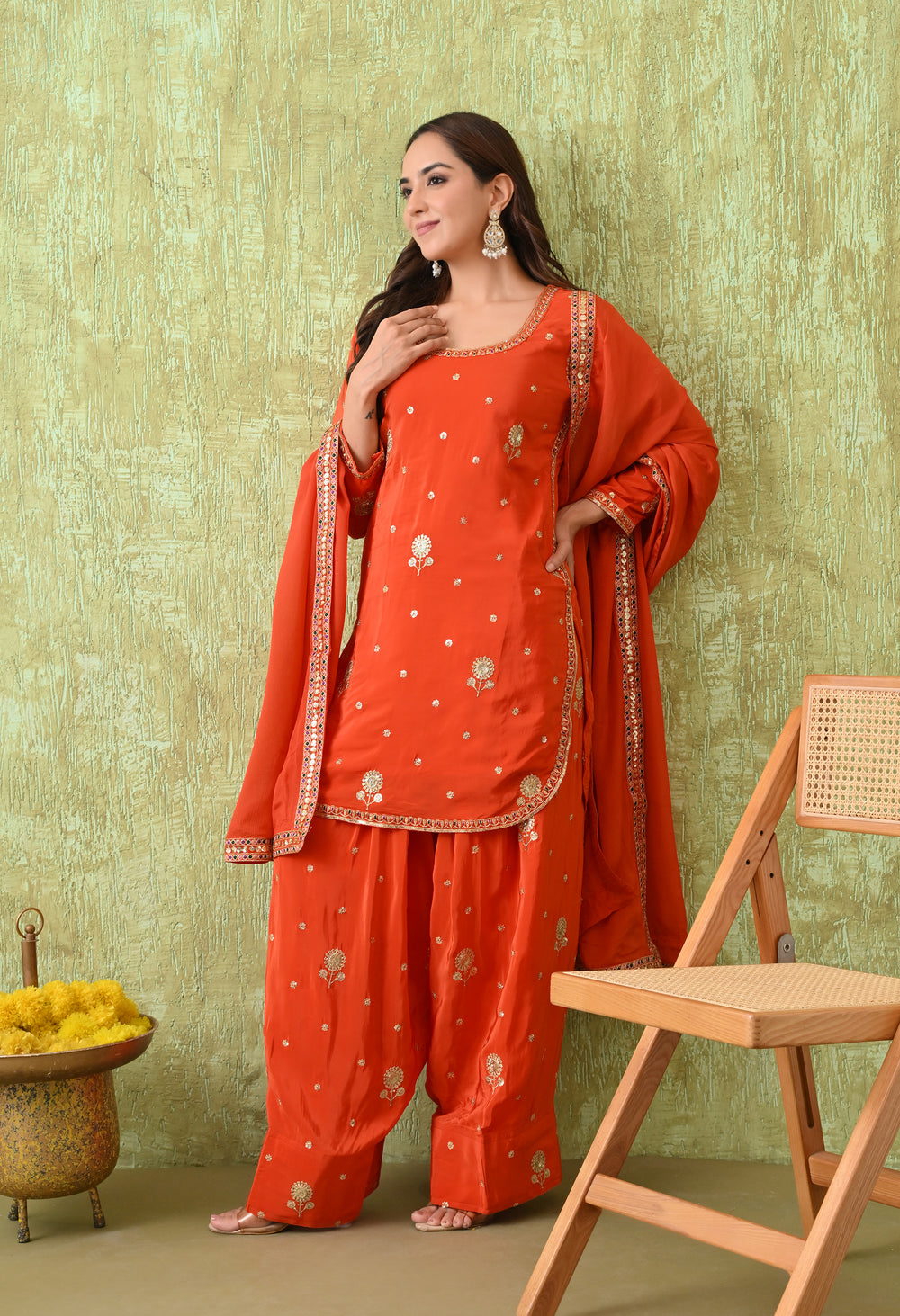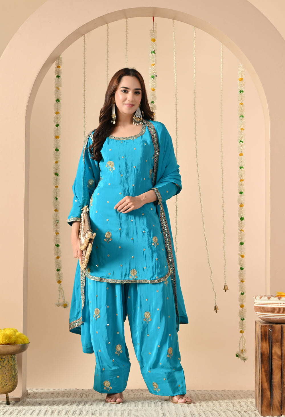 This outfit is a perfect blend of vibrant color and traditional embroidery, making it an excellent choice for festive wear, wedding functions, or special gatherings.