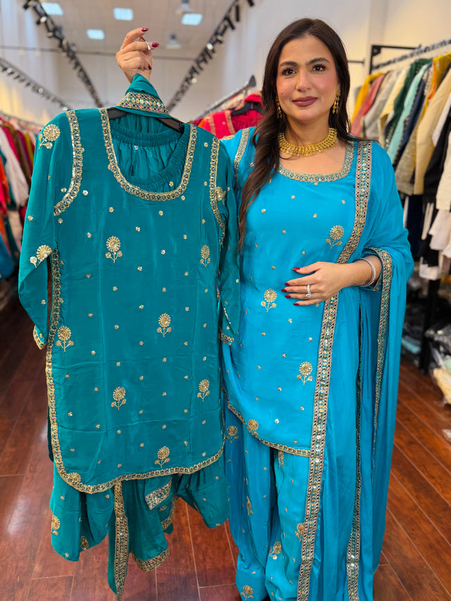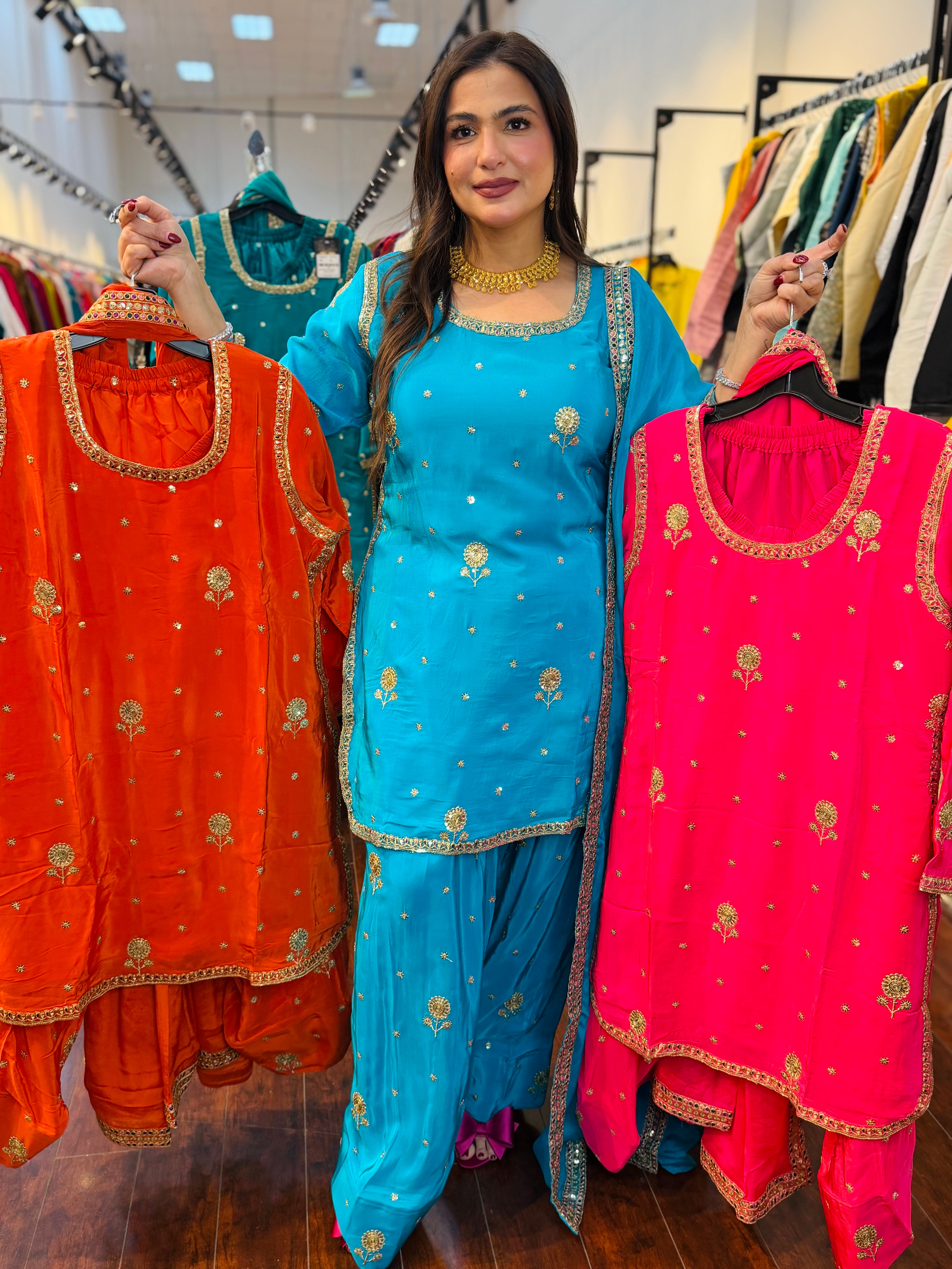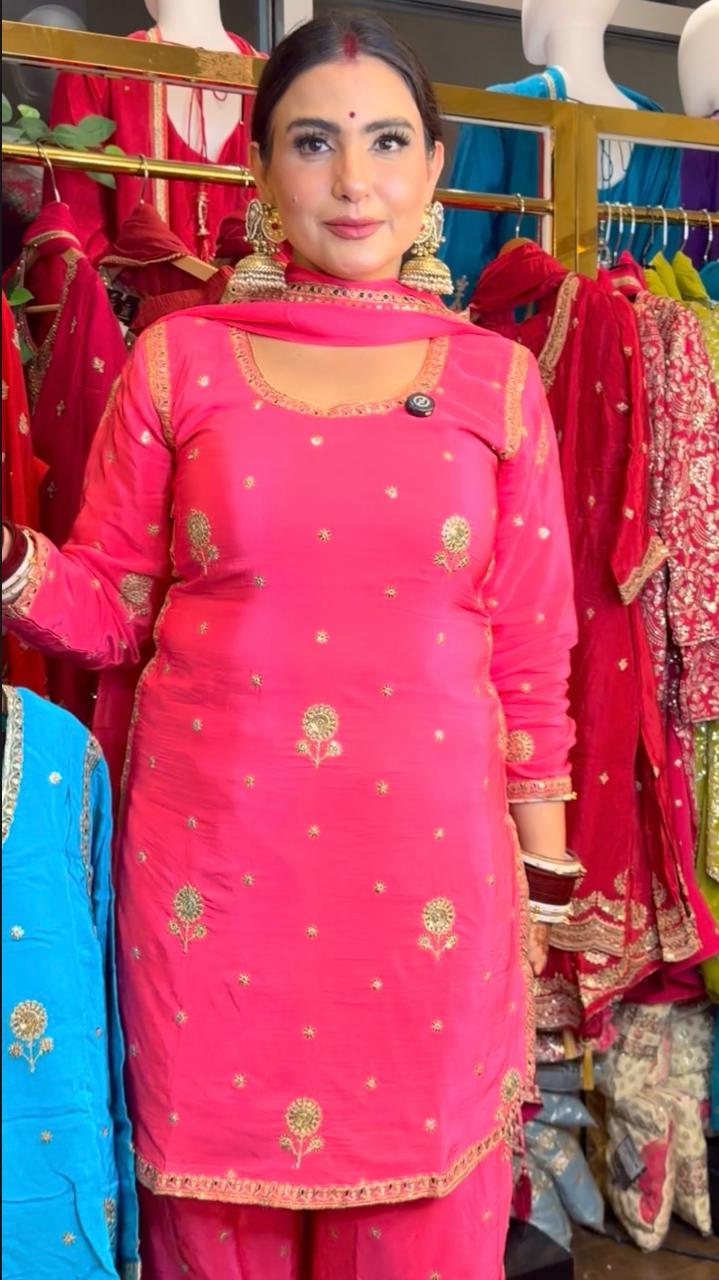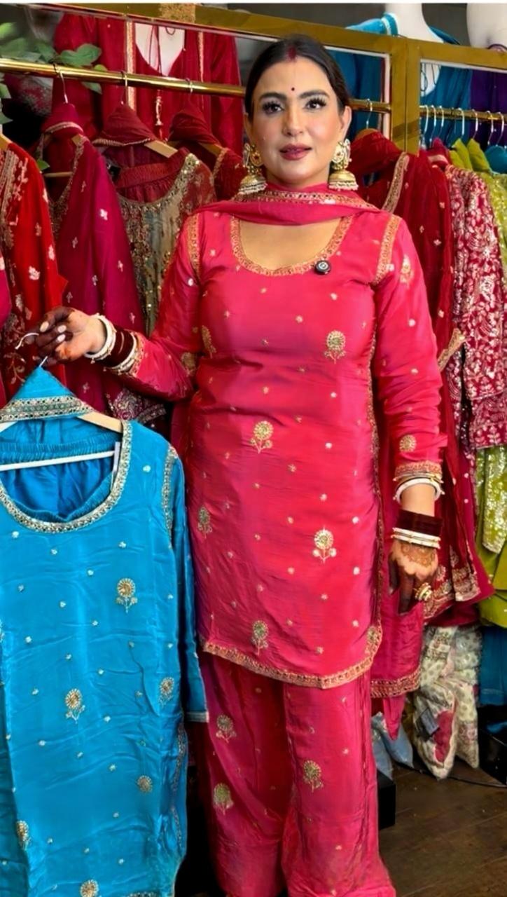 This outfit is a perfect blend of vibrant color and traditional embroidery, making it an excellent choice for festive wear, wedding functions, or special gatherings.