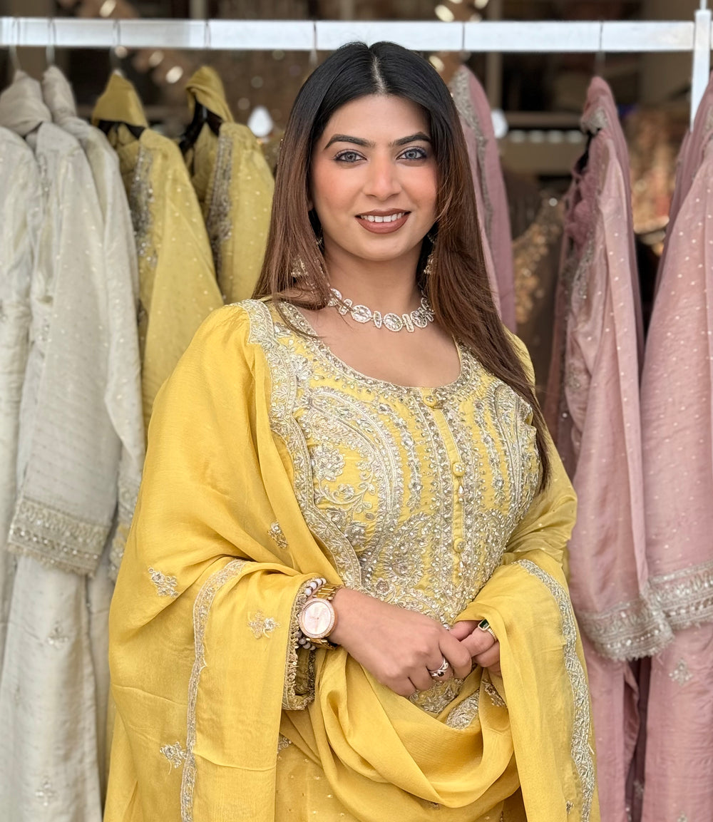 Pehraava suit - 38 / yellow is backordered and will ship as soon as it is back in stock.