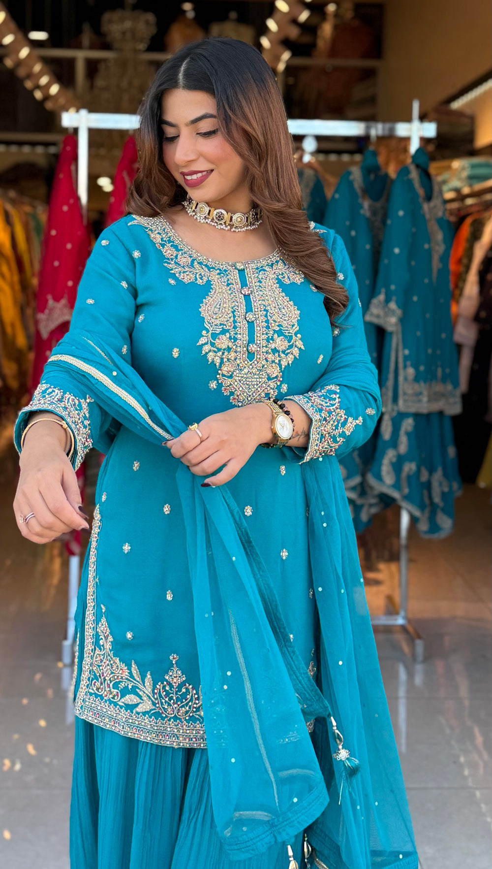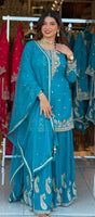 Elevate your festive and formal wardrobe with this stunning ethnic ensemble. The outfit exudes elegance with intricate embroidery and a timeless silhouette, making it perfect for weddings, parties, and traditional gatherings.