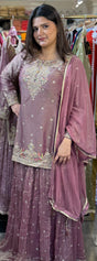 This elegant ethnic ensemble Lehenga is designed with intricate embellishments, perfect for festive and wedding occasions. The outfit reflects a rich traditional appeal while maintaining modern sophistication.