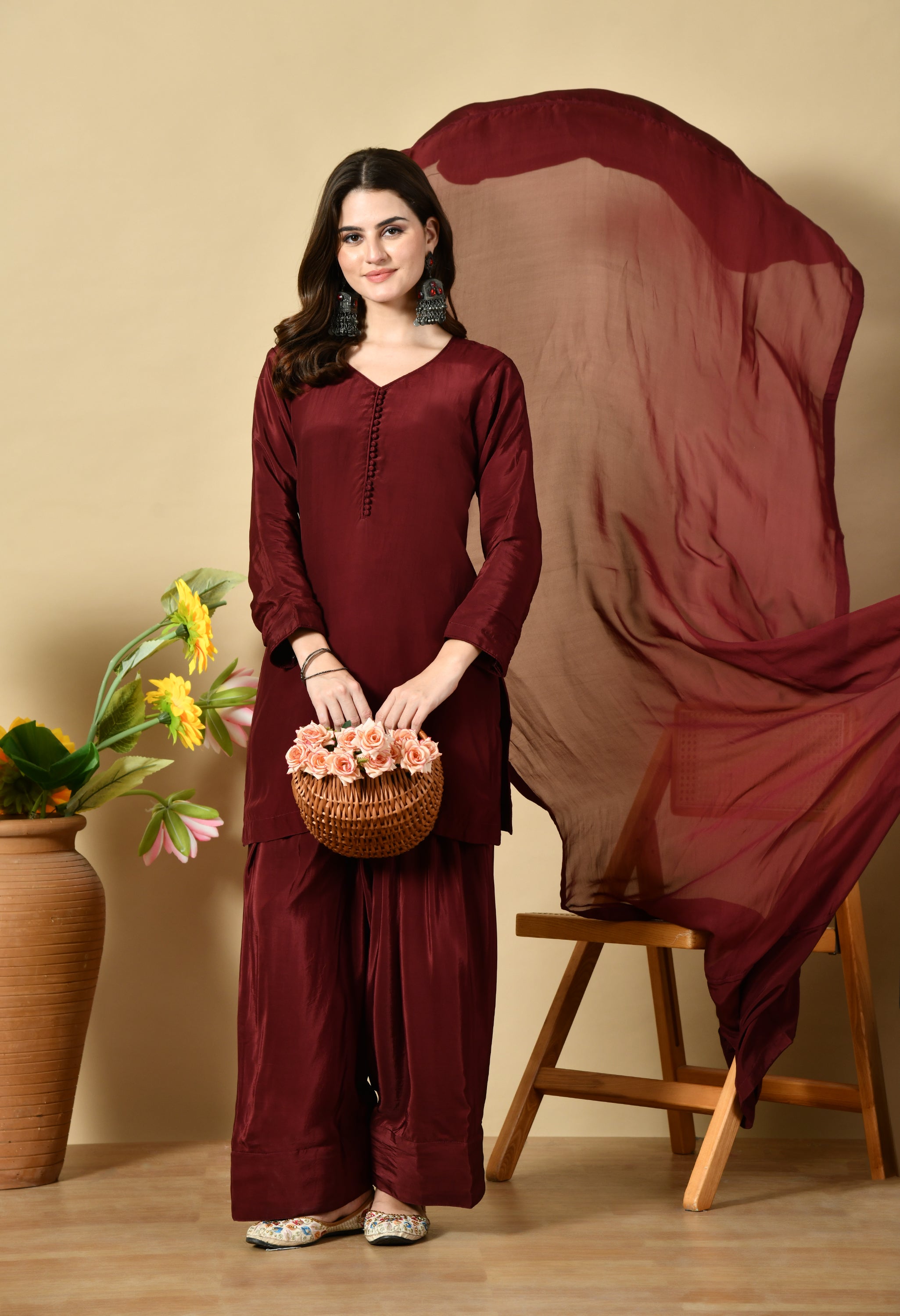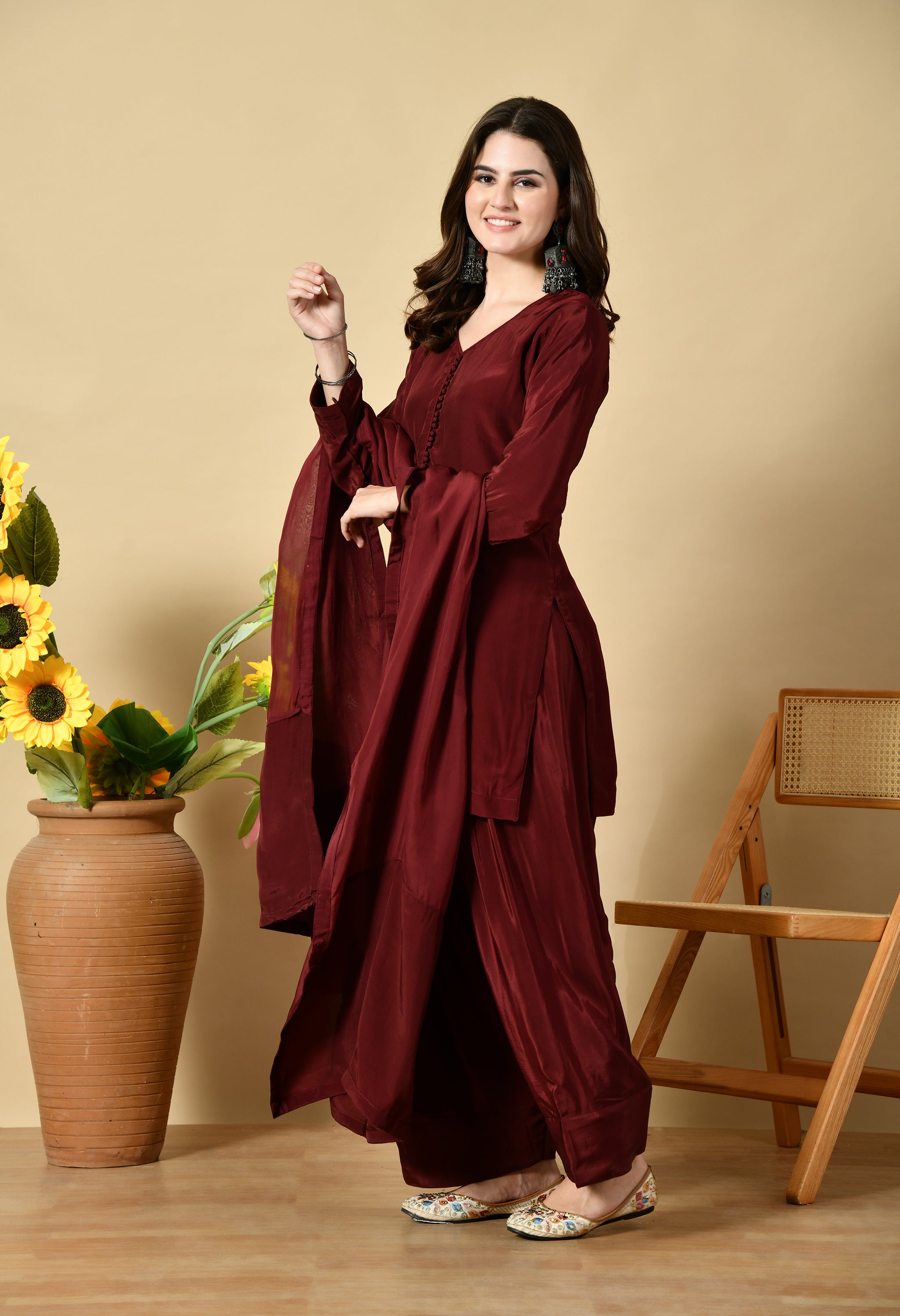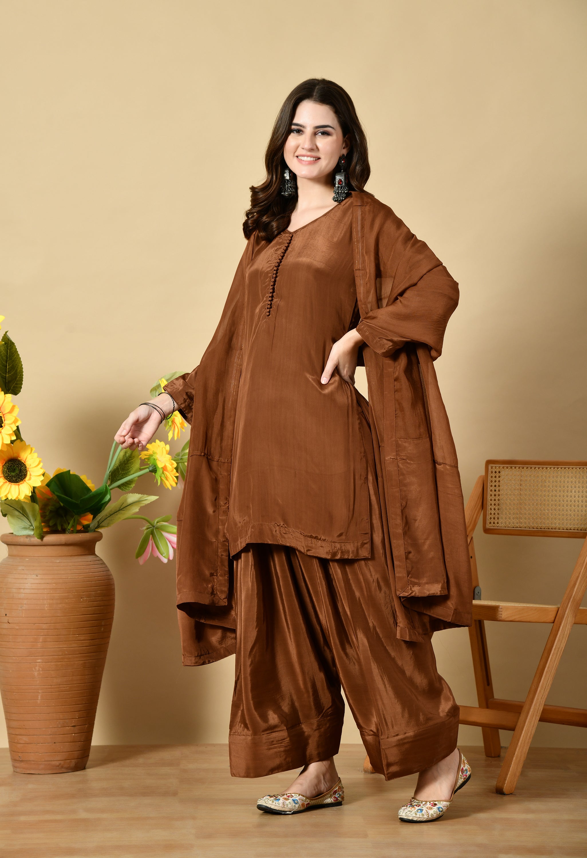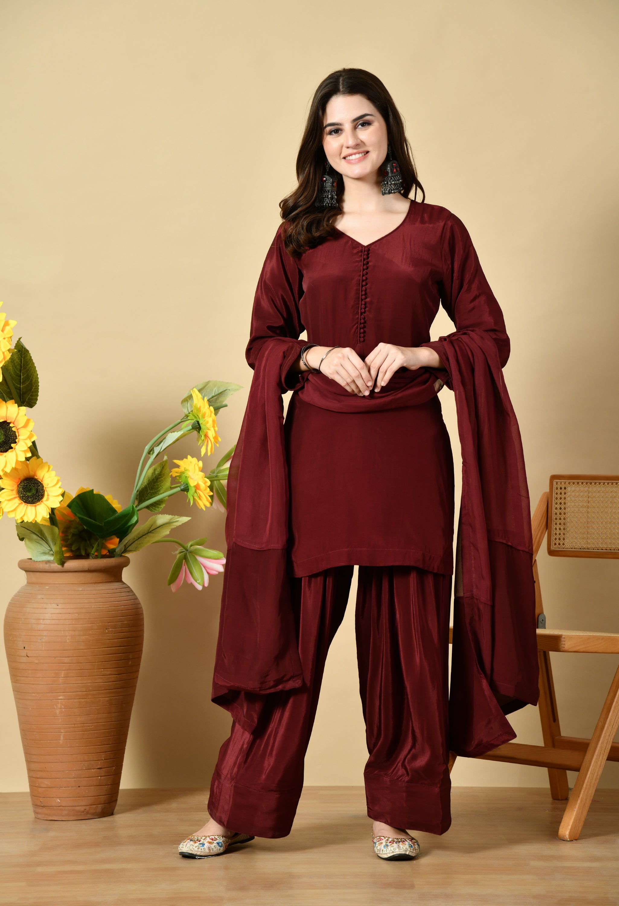 Elevate your ethnic wardrobe with this elegant Punjabi Patiala Suit Set, designed for comfort, grace, and everyday sophistication. Crafted from a premium soft silk-blend fabric, the outfit features a luxurious sheen and effortless drape, making it perfect for festive gatherings, casual outings, or traditional celebrations.