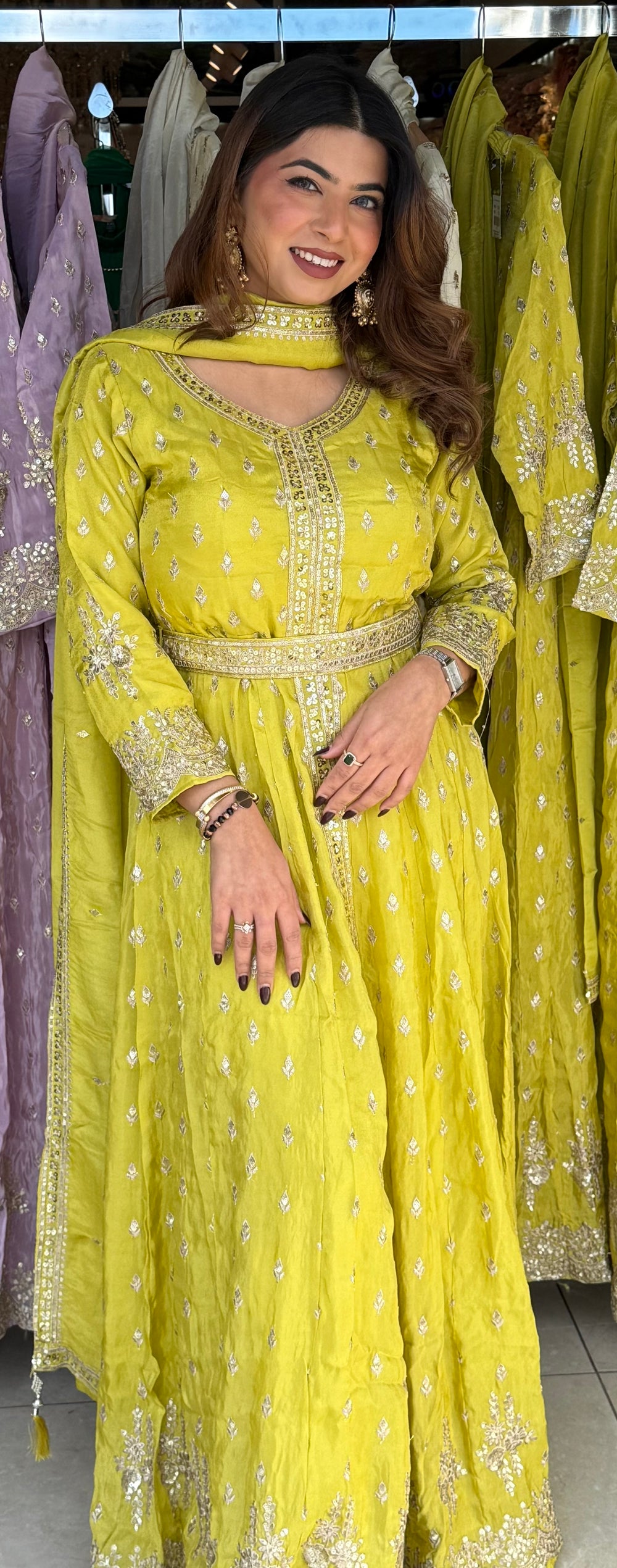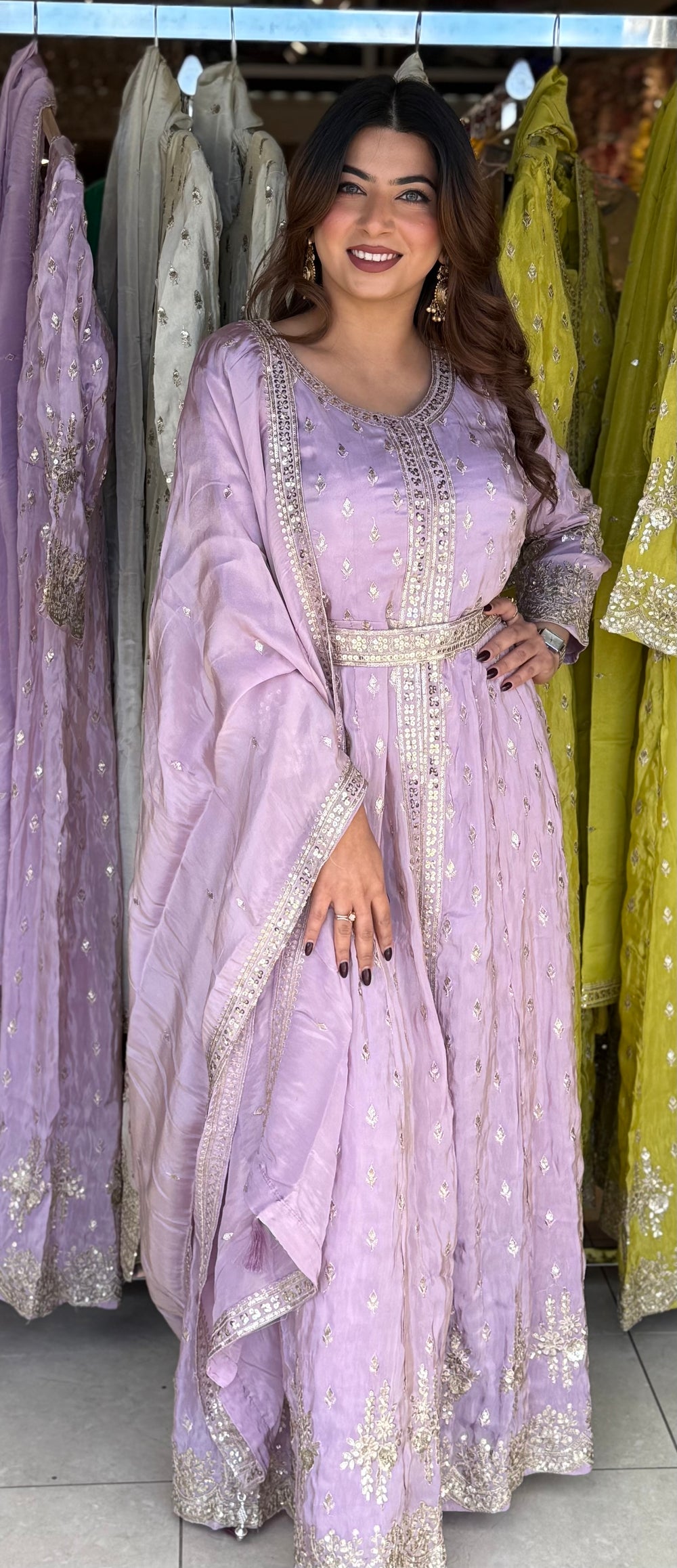 Elevate your ethnic wardrobe with this stunning floor-length Anarkali suit set.Perfect for weddings, festive celebrations, and special occasions, this ensemble combines tradition with timeless sophistication.