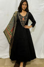 Elevate your ethnic wardrobe with this stunning black Anarkali kurta set, exuding elegance and cultural charm. The rich embroidery and traditional motifs make it a timeless ensemble perfect for festive occasions