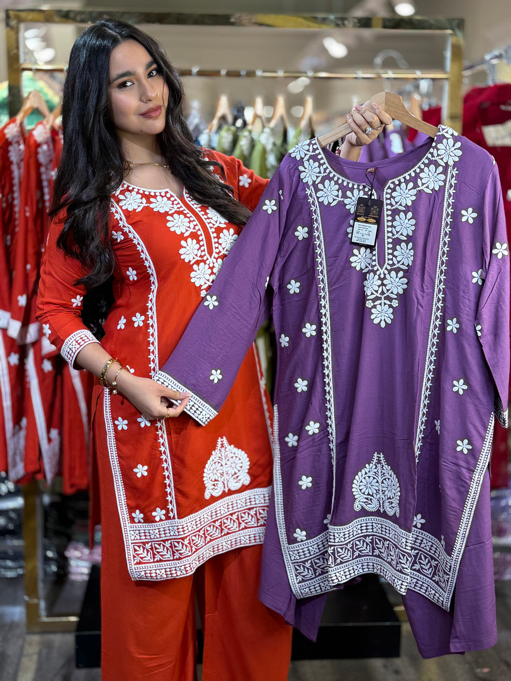 This elegant teal Suit embroidered perfectly combines timeless design with modern sophistication. Featuring delicate white floral embroidery on a rich teal base, this outfit is ideal for festive events, semi-formal occasions, or refined everyday wear.