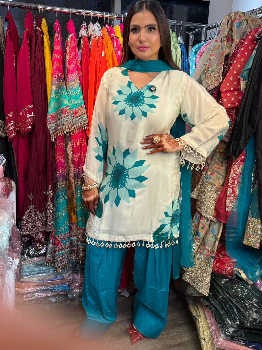 A refreshing ethnic ensemble, designed with floral prints and a breezy silhouette. Perfect for casual festive gatherings, daytime events, or summer wear, this outfit combines comfort with chic ethnic charm.