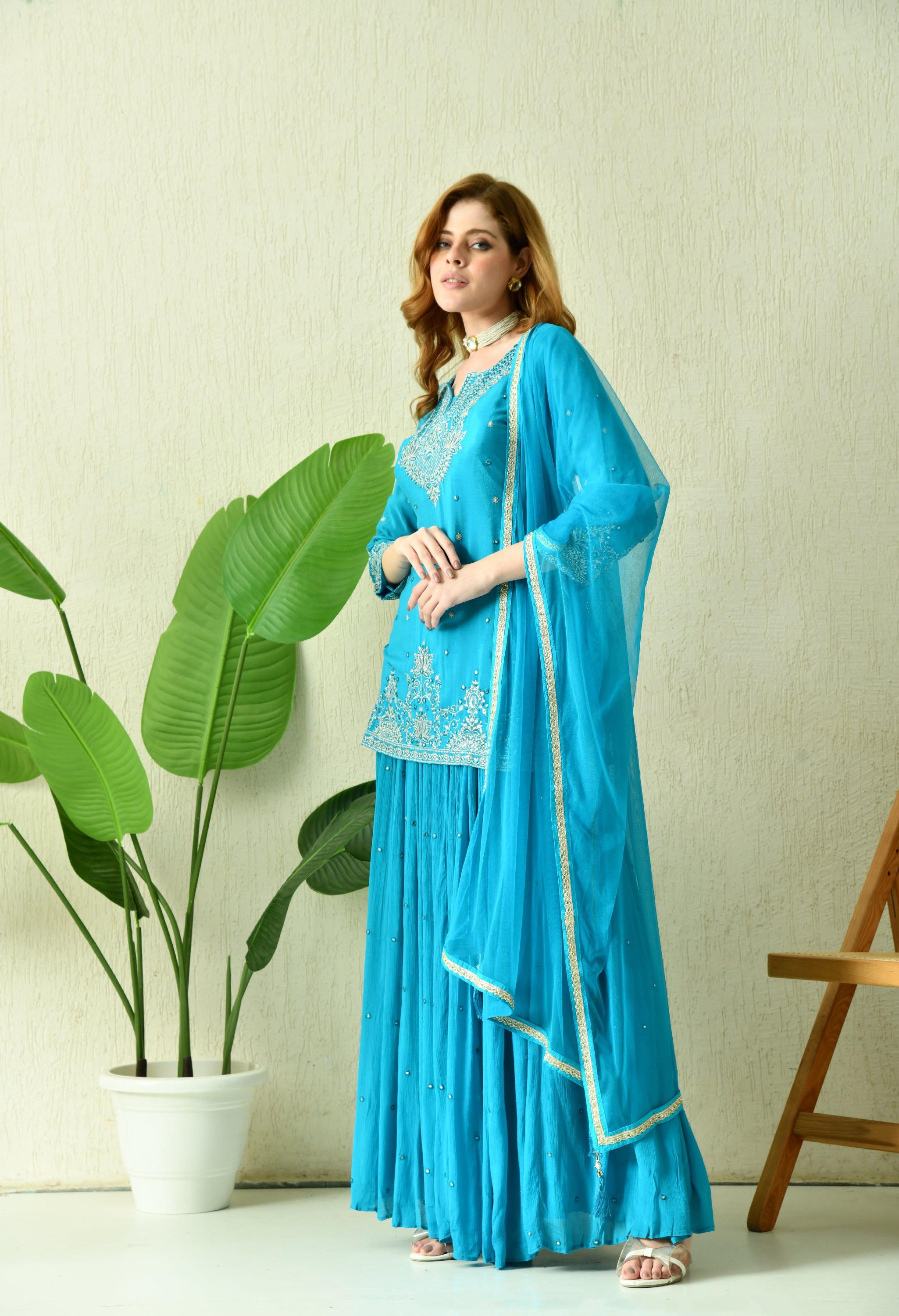 Zeenat lehenga - 38 / BLUE is backordered and will ship as soon as it is back in stock.