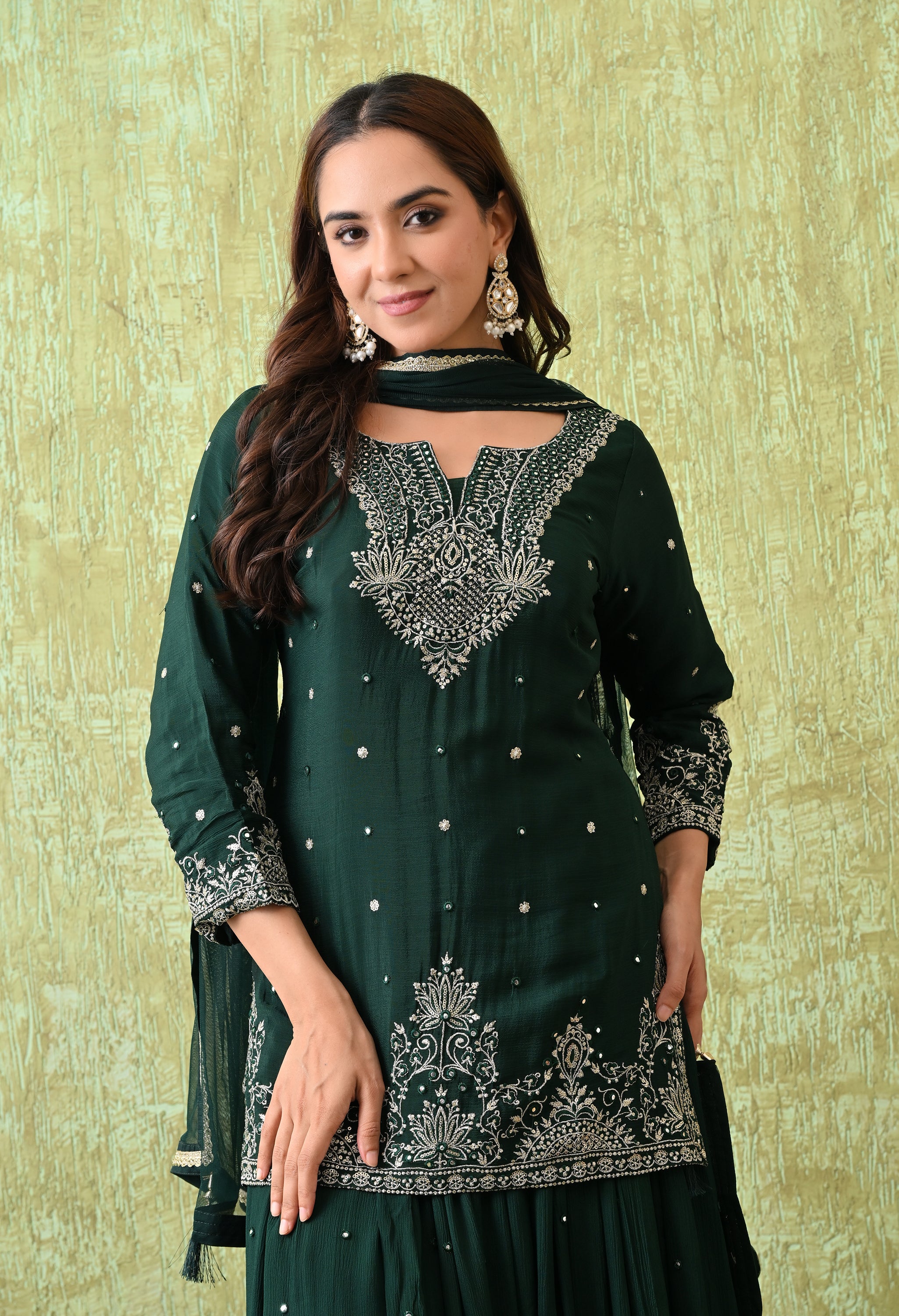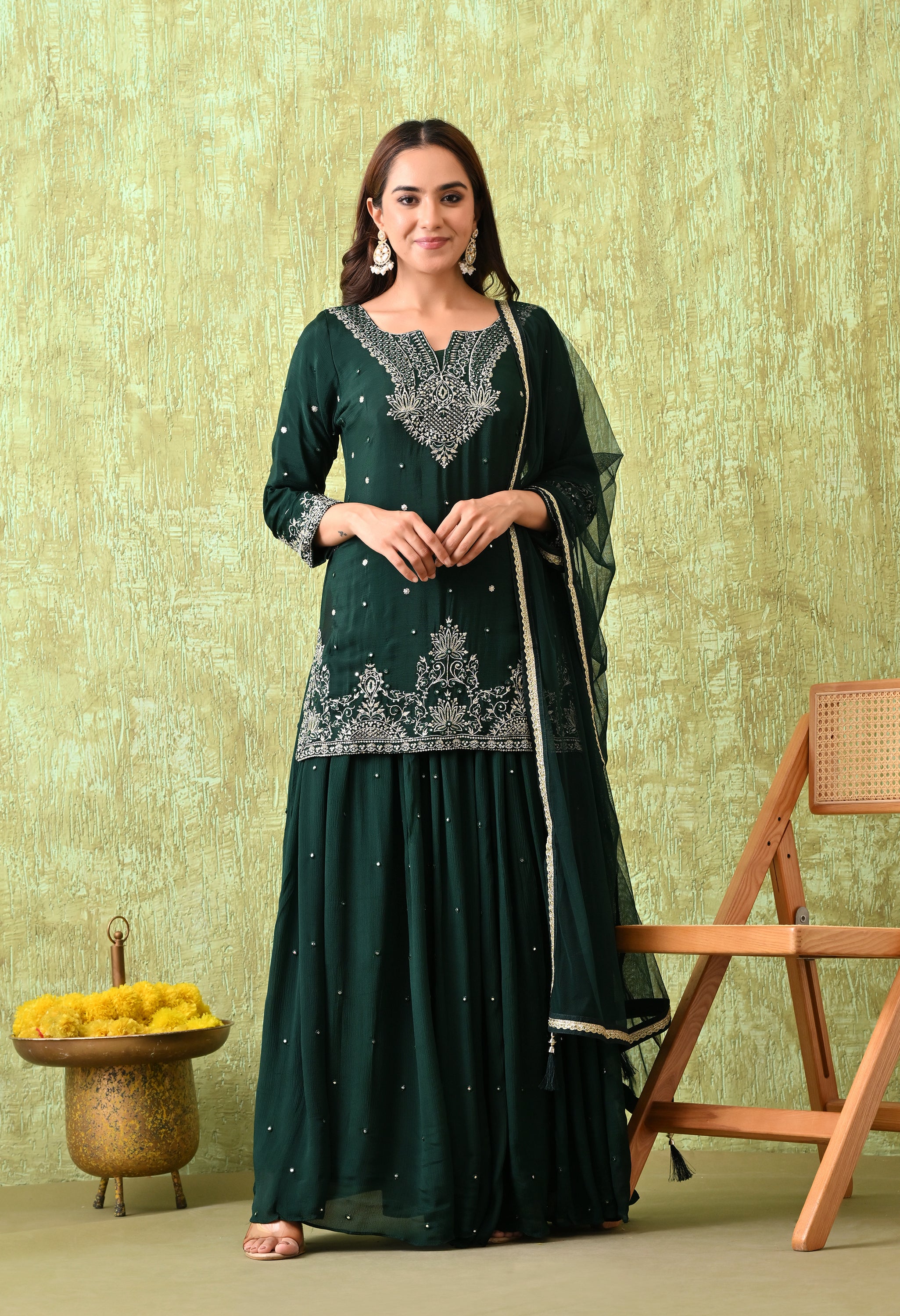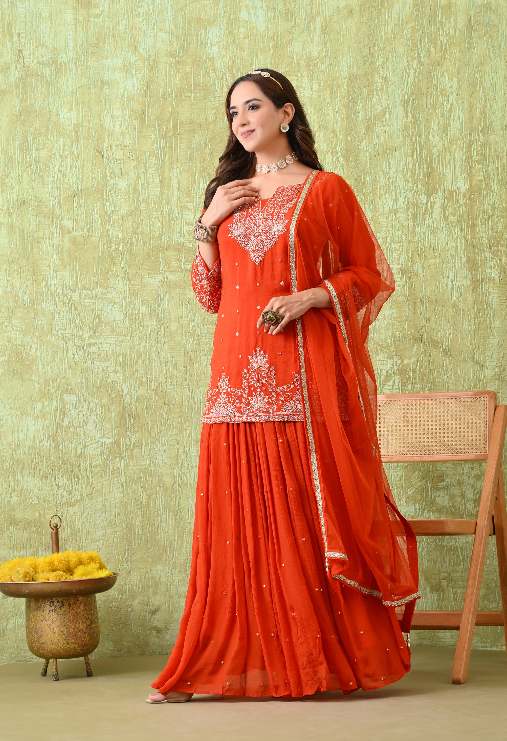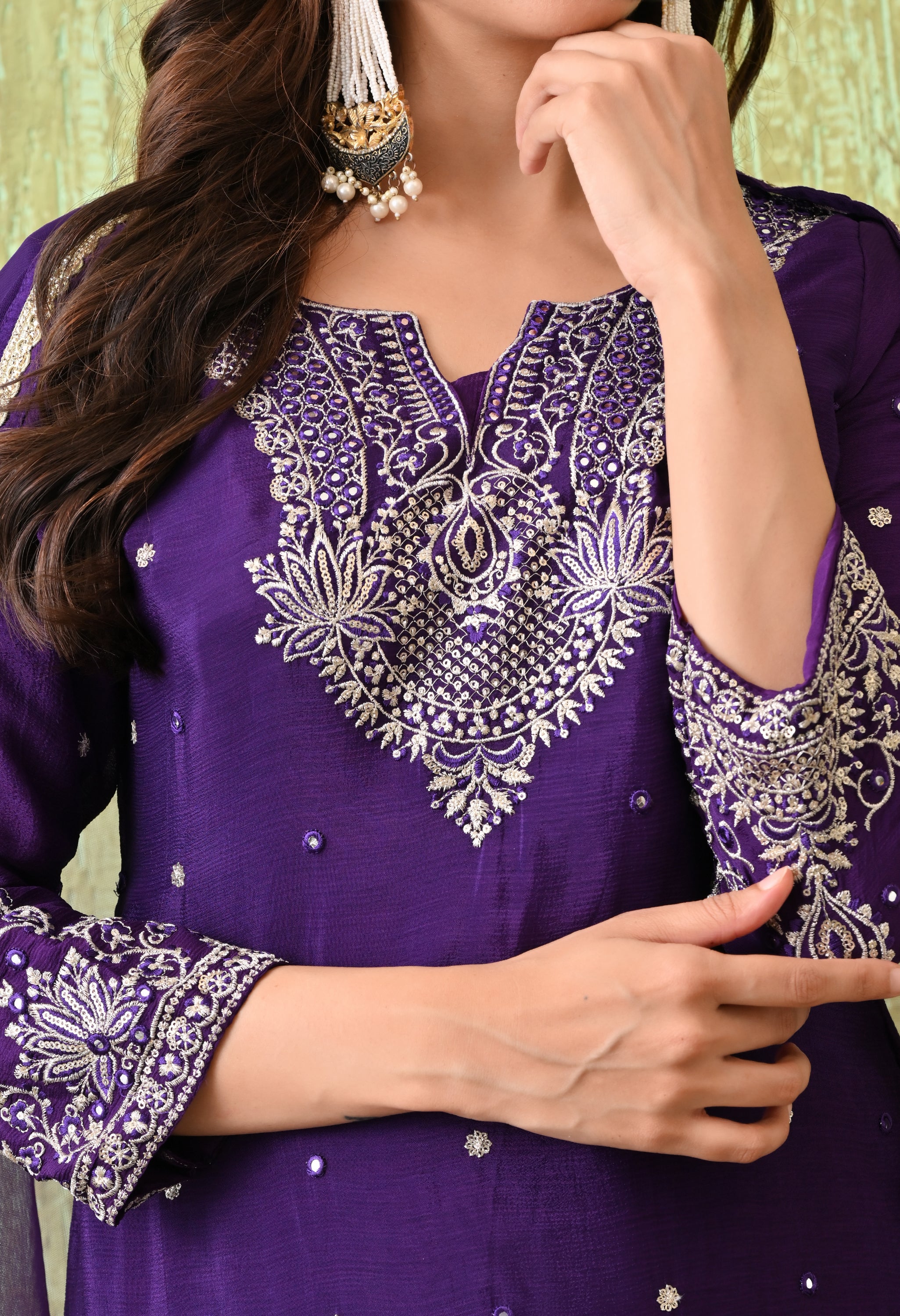 Step into royal elegance with our zeenat Lehanga , crafted in a rich deep purple hue that radiates sophistication. The kurta is embellished with delicate silver thread and sequin embroidery on the neckline, sleeves, and hemline, adding a regal charm. Paired with a flowy Lehanga and a matching dupatta edged with a fine border, this ensemble is a statement of grace and tradition. Ideal for weddings, festive occasions, and evening celebrations, this outfit ensures you shine with timeless beauty.